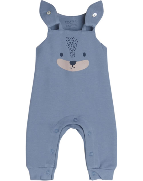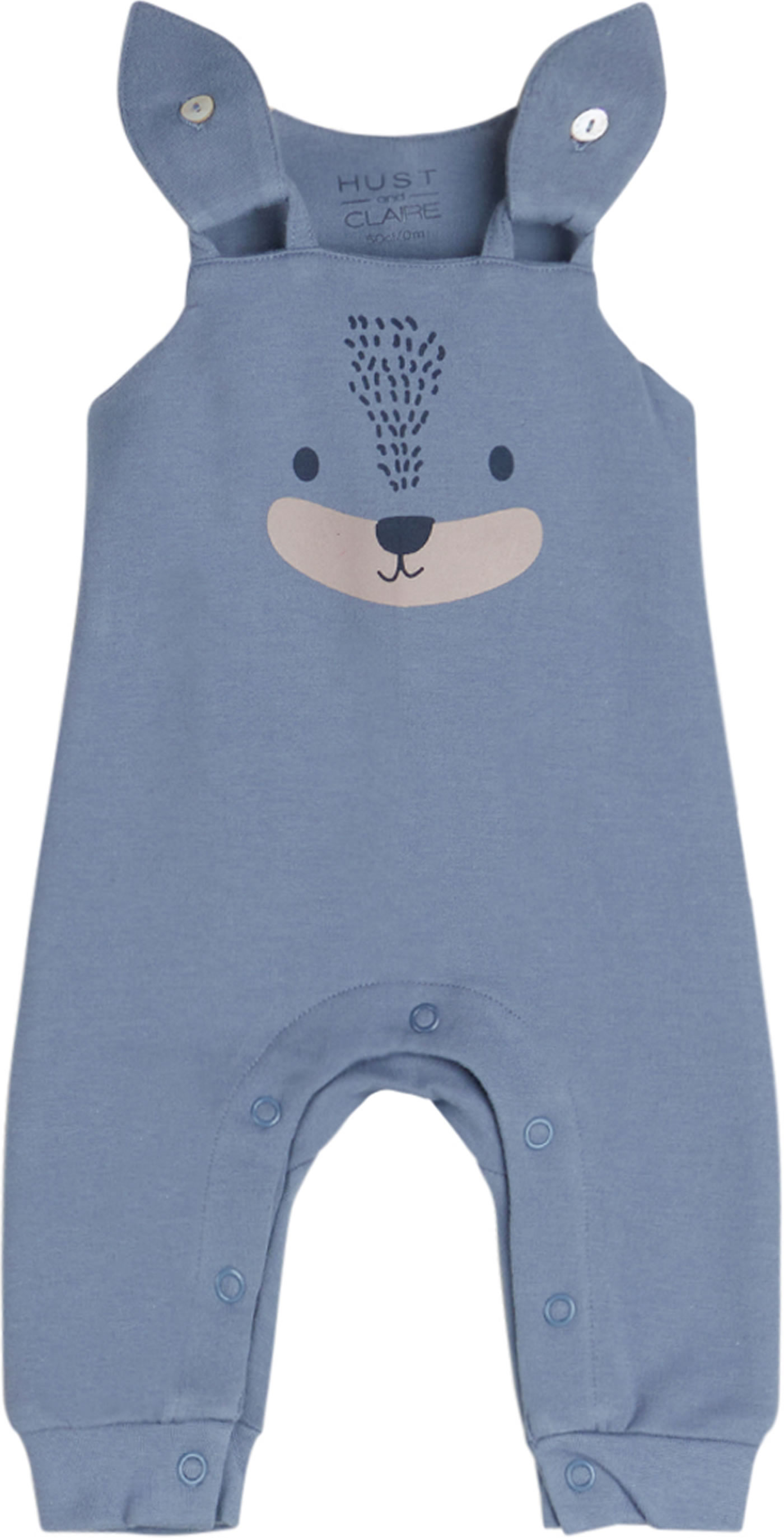 Pretty overalls made from soft sweat material by HUST AND CLAIRE. A special eye-catcher is the rabbit face with the big ears. The straps can be adjusted in length with two buttons. Snaps at the crotch make it easy to put on and take off. The soft sweat fabric is made from ecologically produced cotton and is softly brushed on the inside.