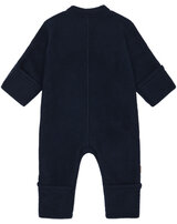 The overall features long sleeves and legs with practical fold-over cuffs that quickly turn into warm hand or foot covers when needed.