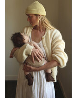 Cuddly soft baby shoes with ribbons made of merino wool from HVID, which keep little feet nice and warm.