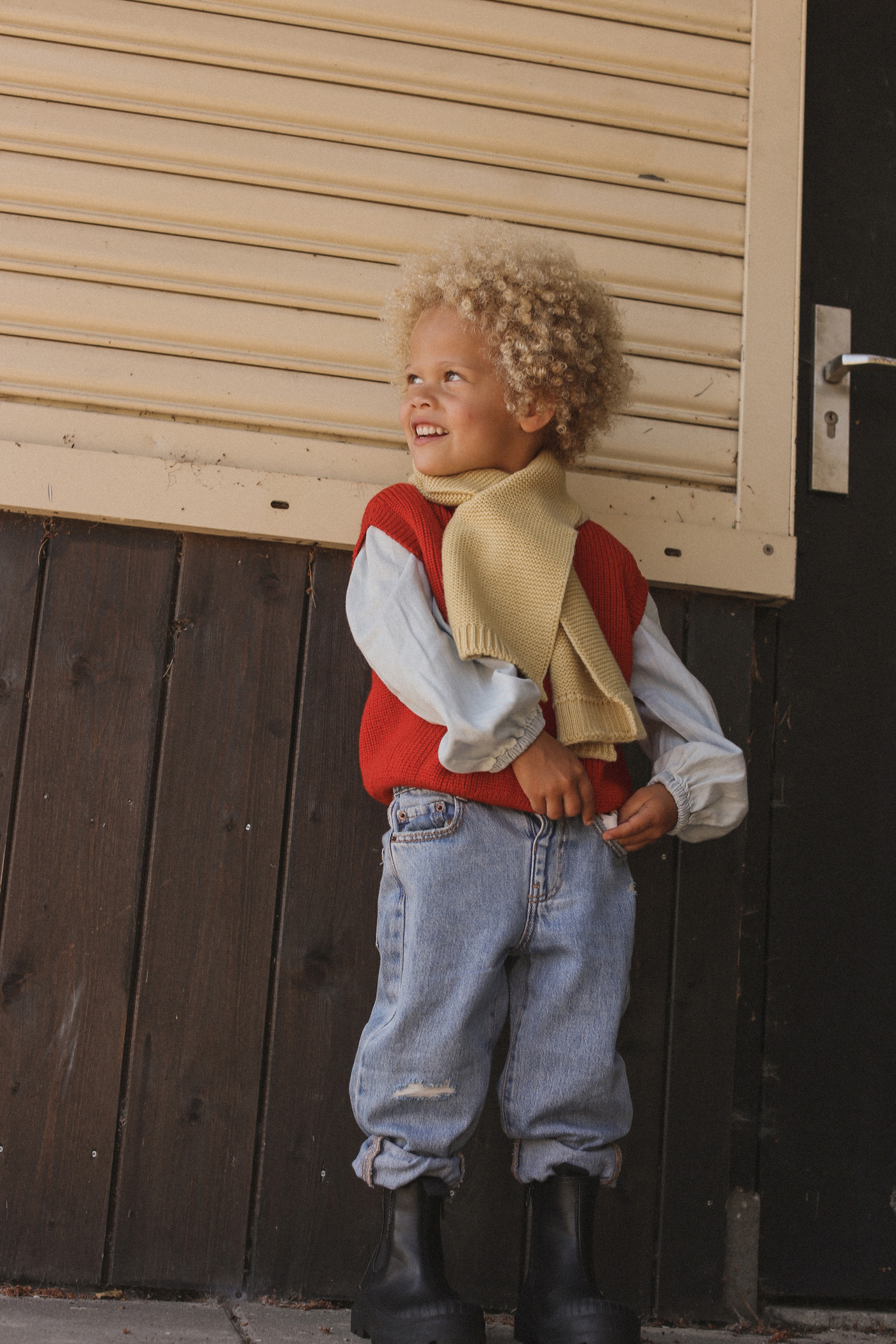 Hvid Knitted scarf "Ivo" made from merino wool - Light Yellow