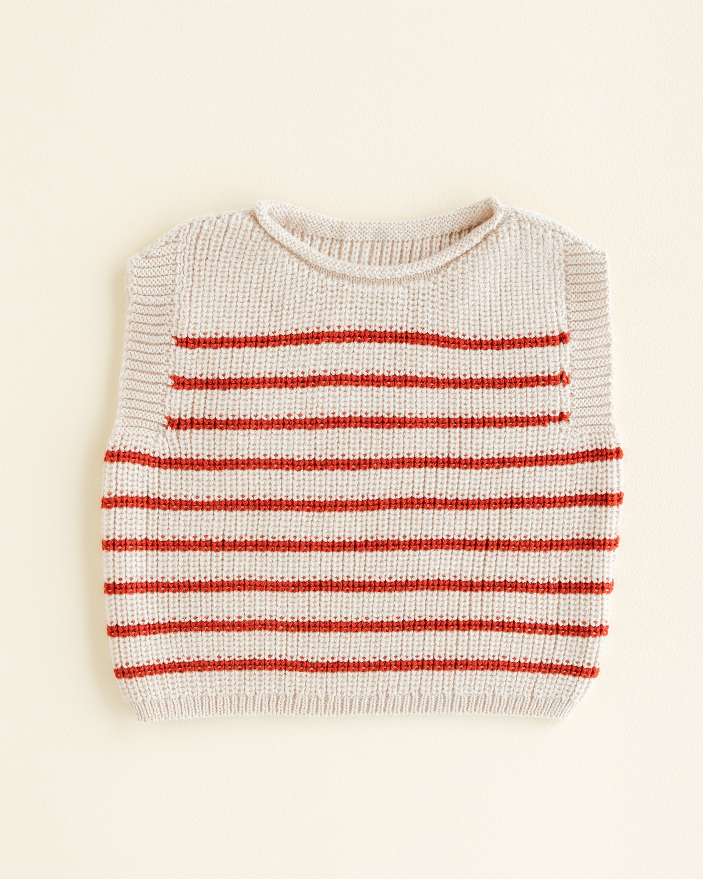 Hvid knitted vest merino wool - Cream/Red