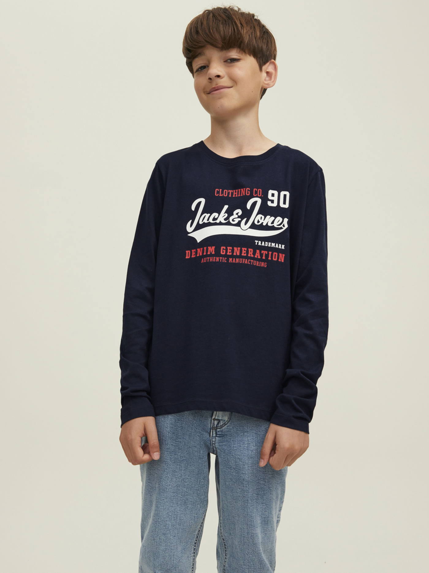 Soft and comfortable long sleeved shirt with a round neck and logo print by JACK & JONES for boys. The shirt made of cotton can be easily combined.