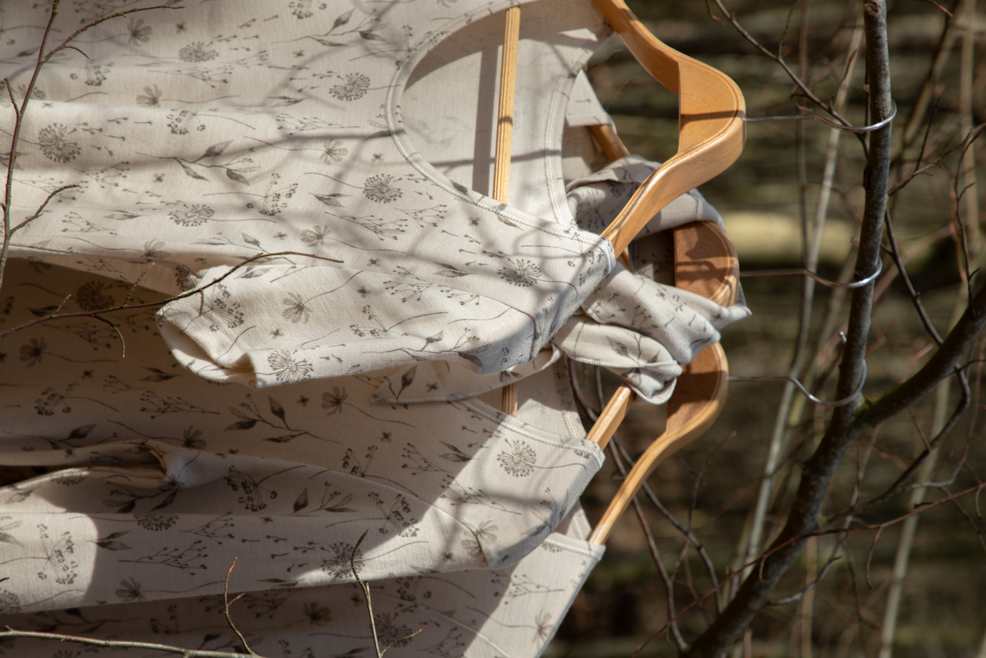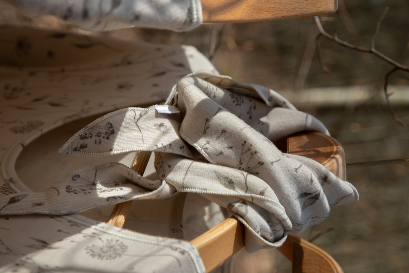 Pretty wildflowers in neutral tones adorn the beautiful design.