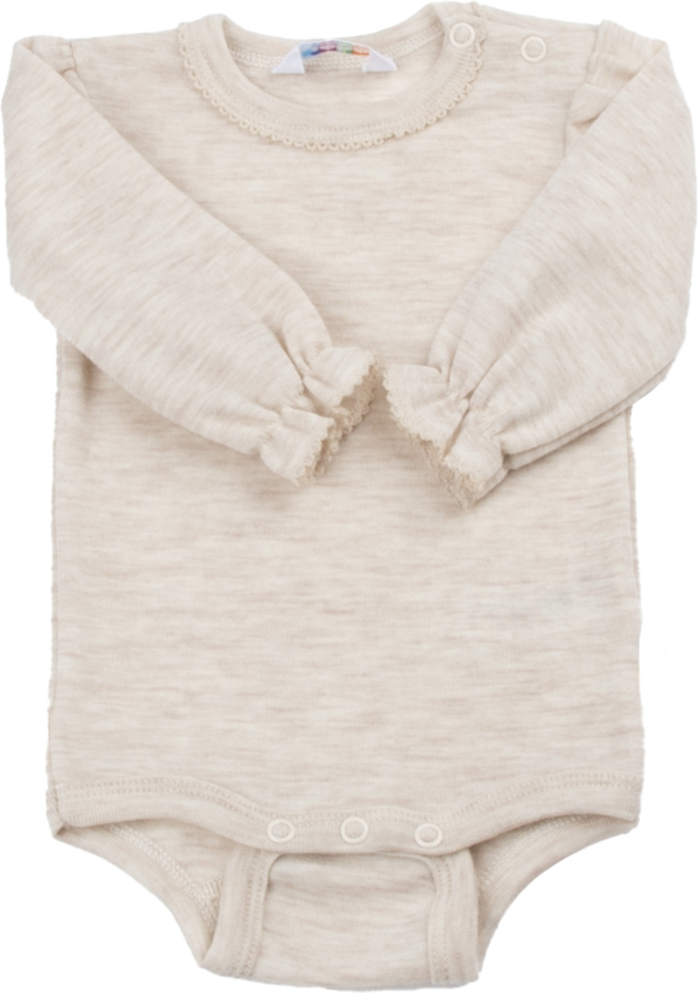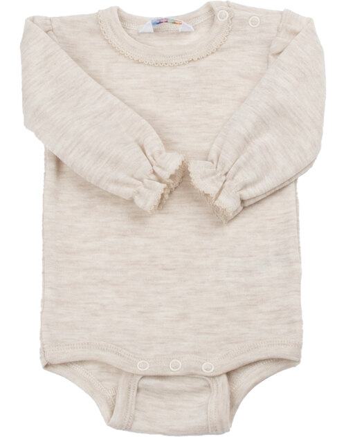 Zarter und superweicher Body aus Merinowolle. Die kleinen Ärmel aus Rüsche sind ein tolles Detail