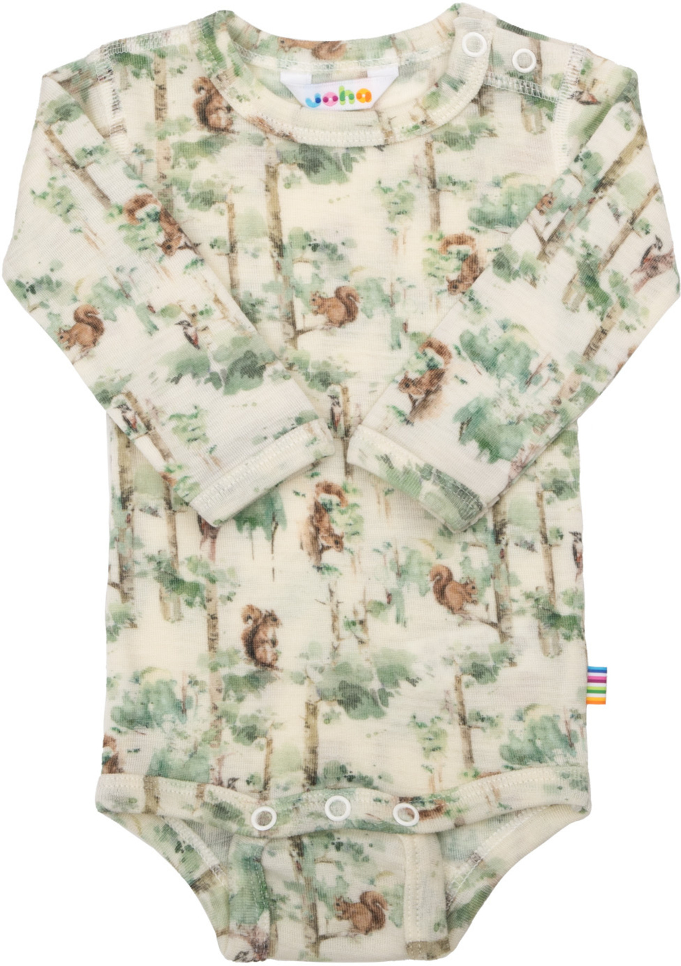Joha Long-Sleeve-Bodysuit with Print made from Merino Wool - Off White 🐿️