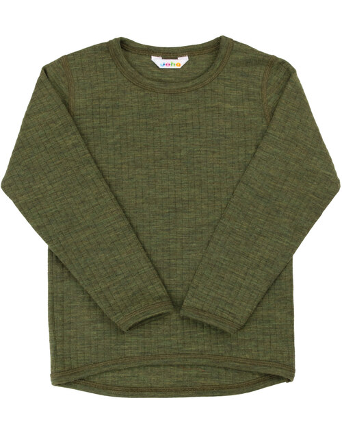 The cuddly, ribbed long-sleeved shirt made of merino wool by JOHA offers the highest level of comfort for the little ones. The light and soft material regulates body temperature, wicks away moisture and prevents odor build-up. This makes the T-shirt an ideal piece of clothing for the warm days of the year. The back is rounded and cut slightly longer.