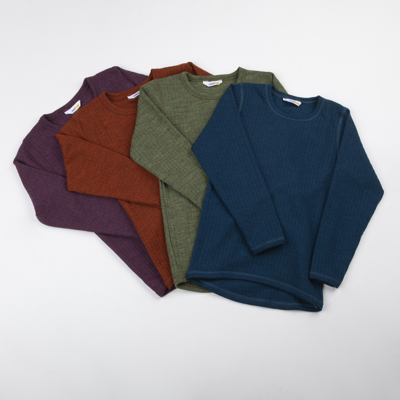 The cuddly, ribbed long-sleeved shirt made of merino wool by JOHA offers the highest level of comfort for the little ones. The light and soft material regulates body temperature, wicks away moisture and prevents odor build-up. This makes the T-shirt an ideal piece of clothing for the warm days of the year. The back is rounded and cut slightly longer.