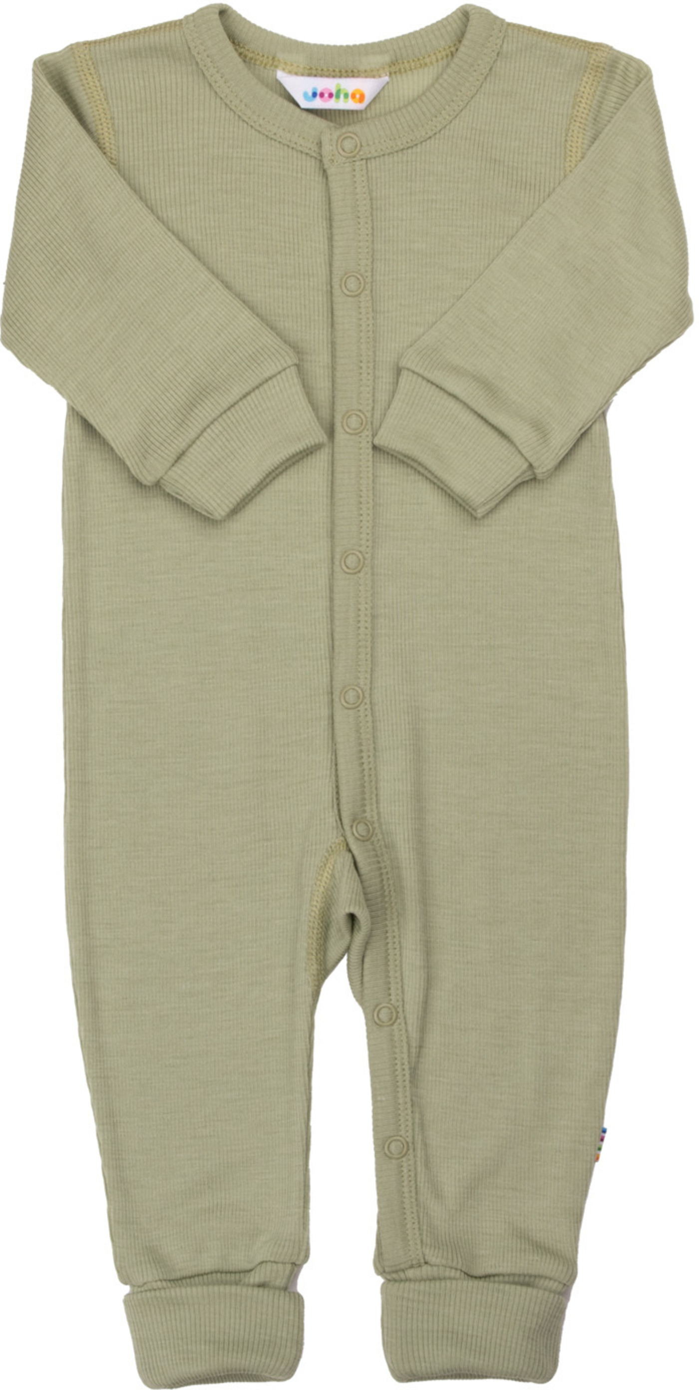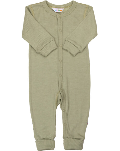 Joha Overall Jumpsuit uni merino wool/silk with button placket - Hellgrün