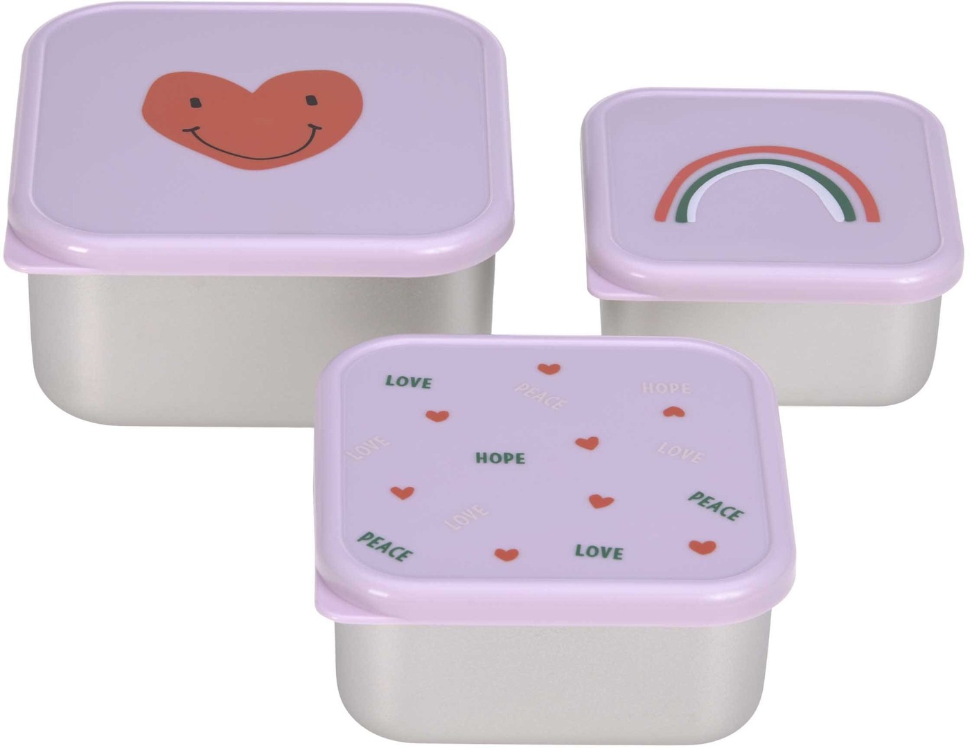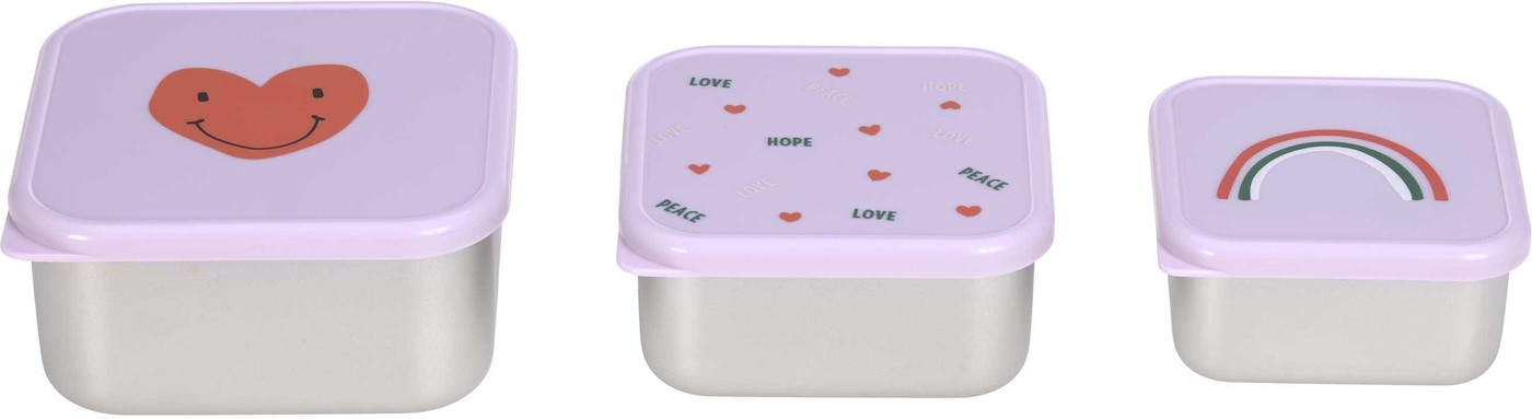 Lässig Snackbox-3er-Set HAPPY RASCALS HEART stainless steel lunch box - Lilac