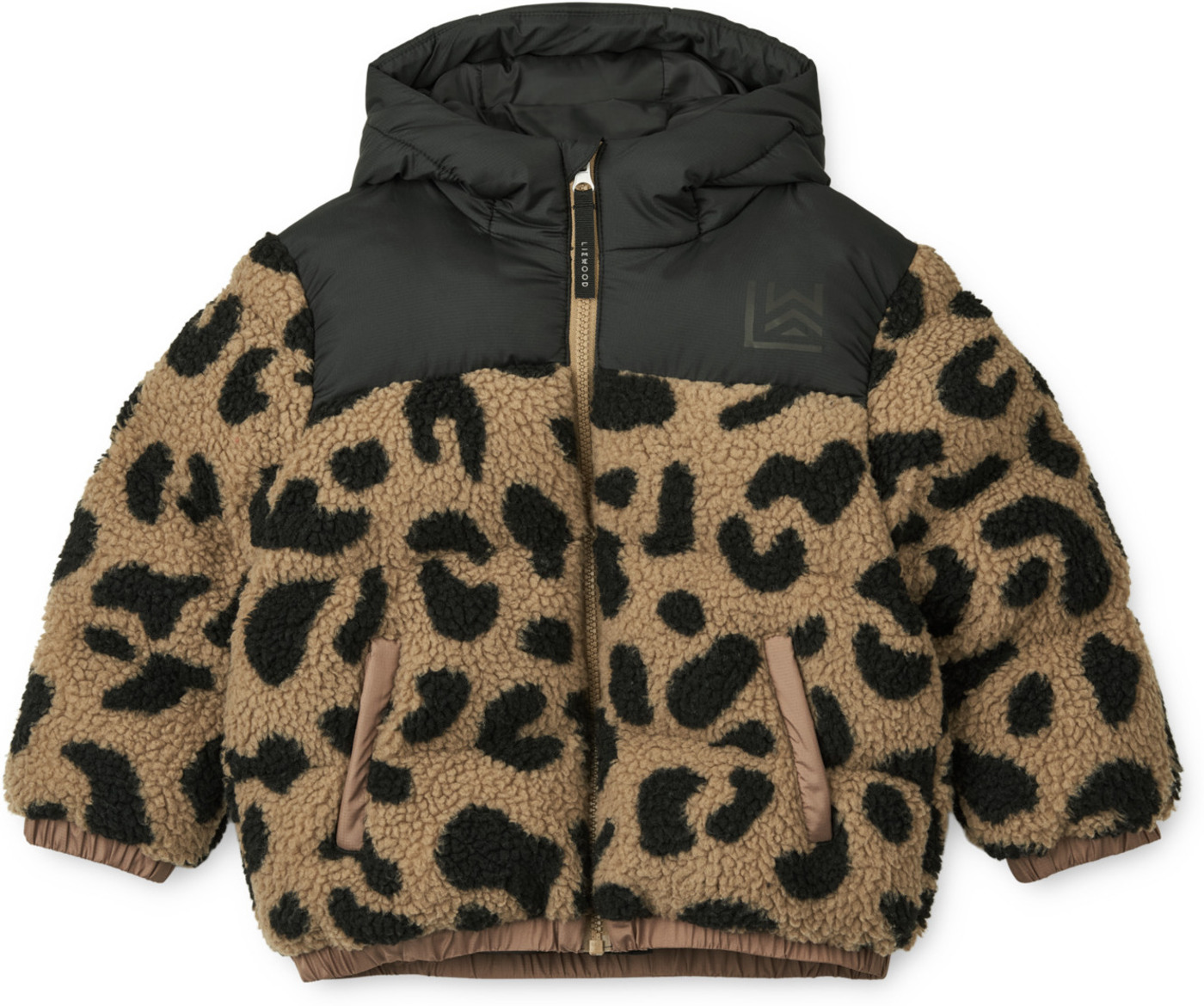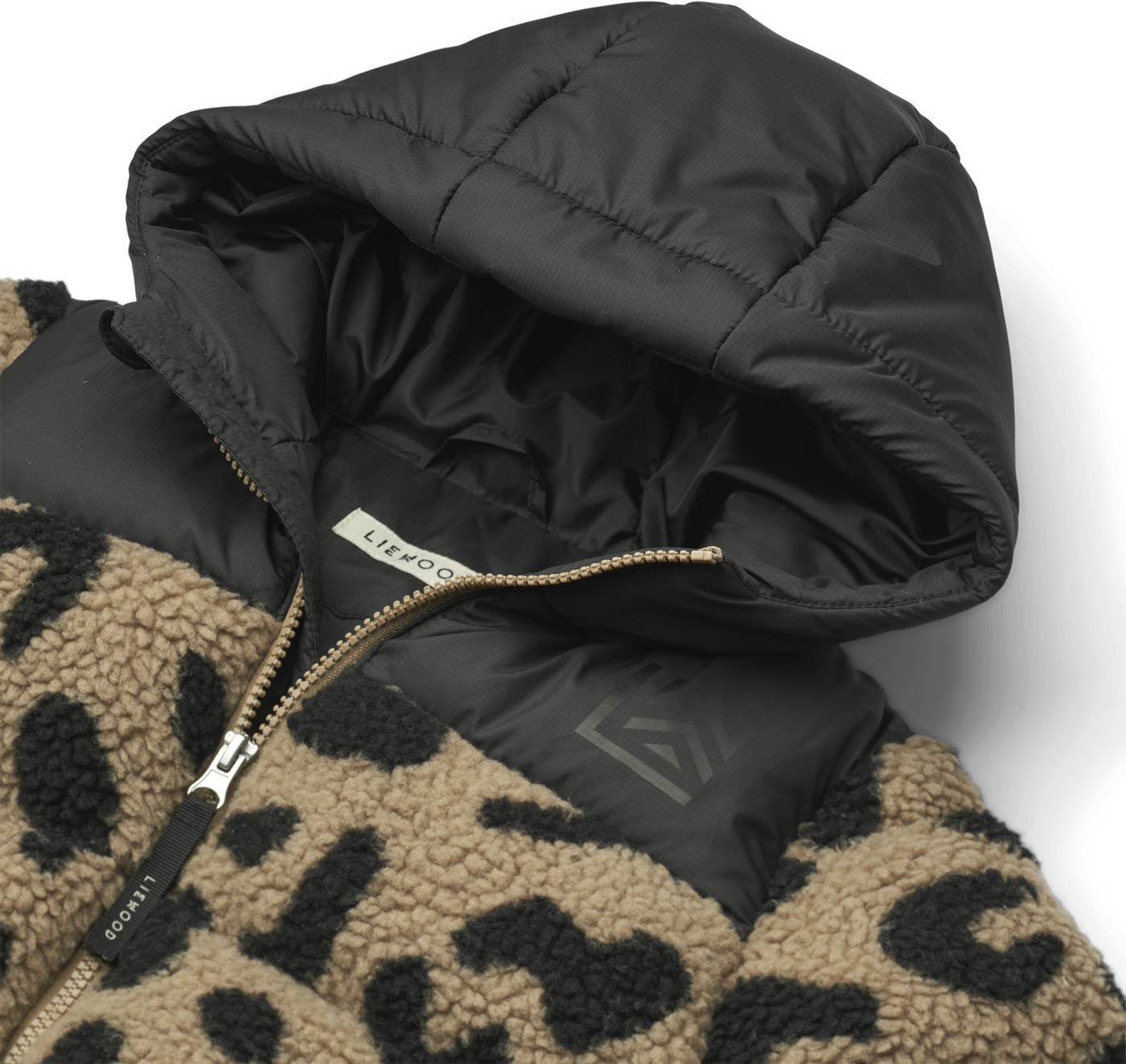 Liewood Fleece-Puffer-Jacket with Hood & Leo Print - Mega Leo/Oat Mix 🐆