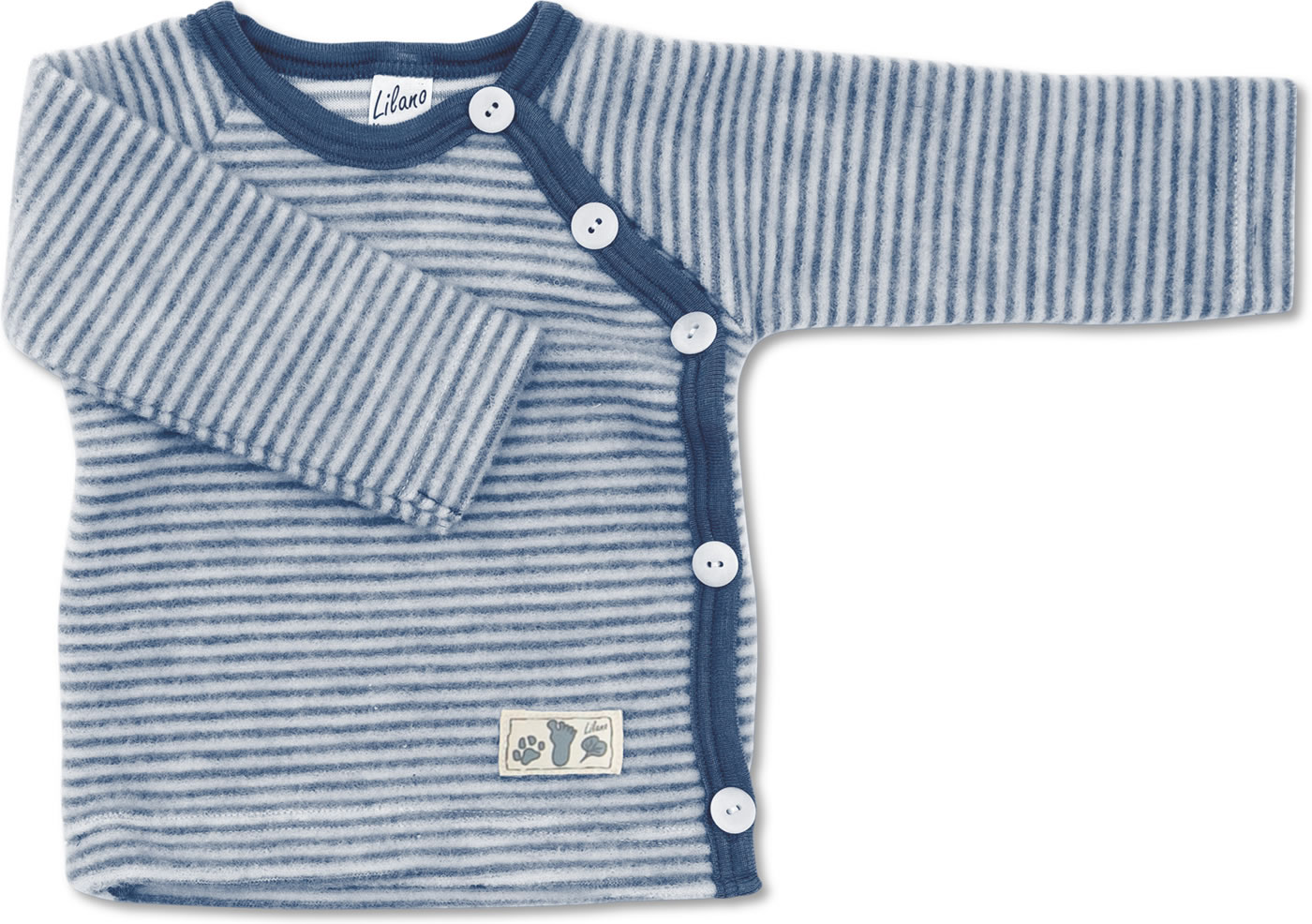 Cuddly long-sleeved shirt with side buttons by LILANO. The soft natural material made of new wool is particularly pleasant on baby's skin.