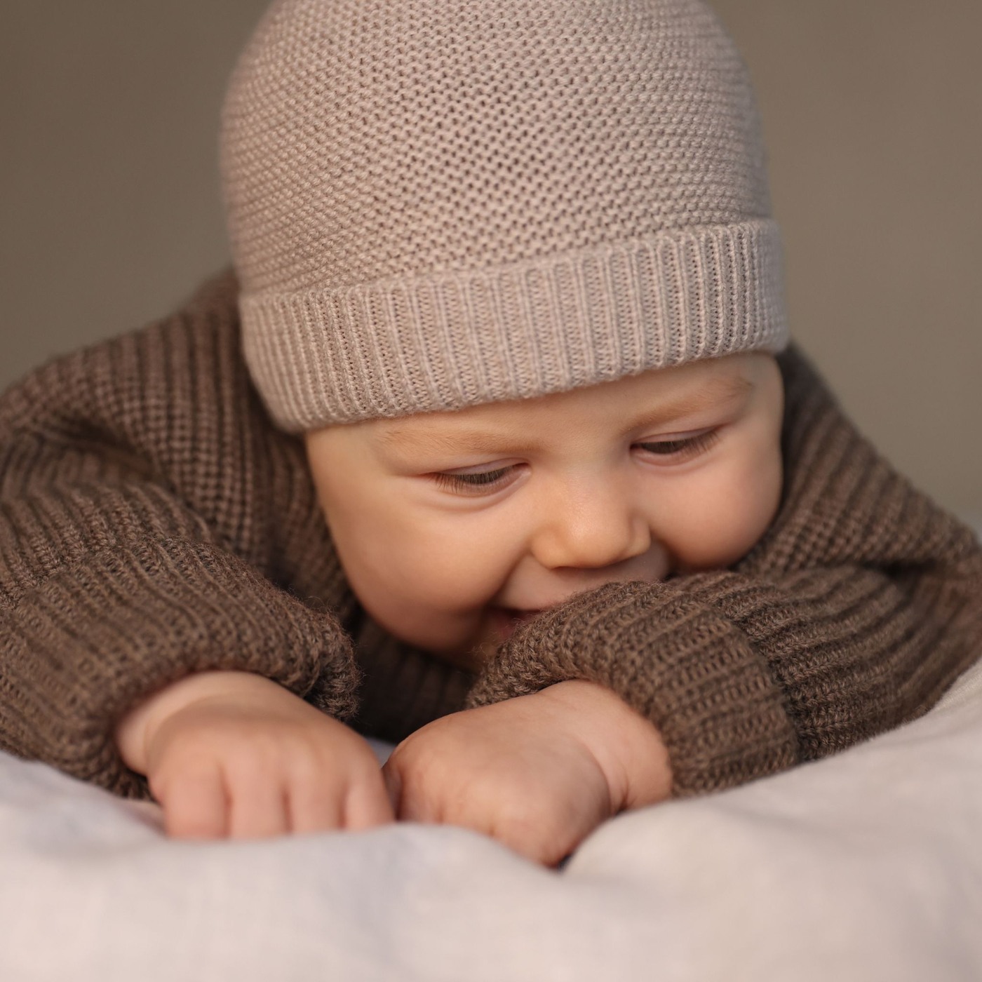 Lille Toni Baby-Beanie "Lotte" 0-6 Month of Merino Wool - Camel Melange