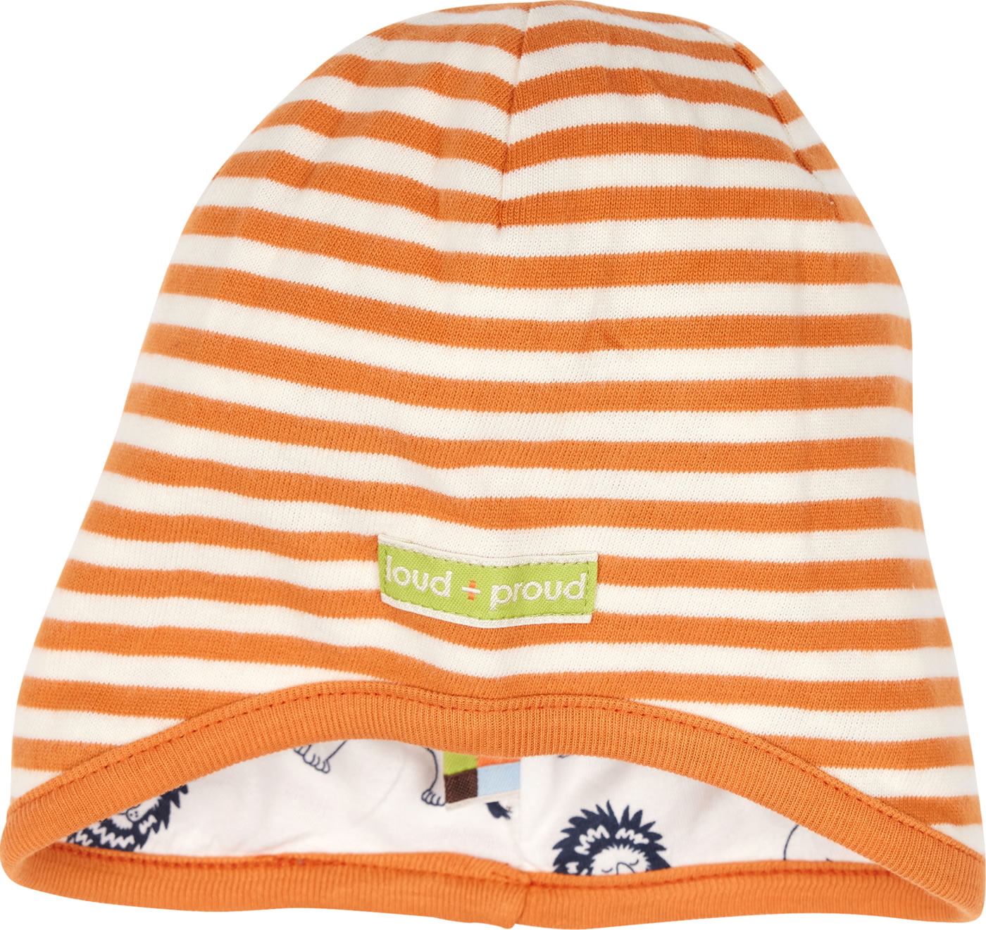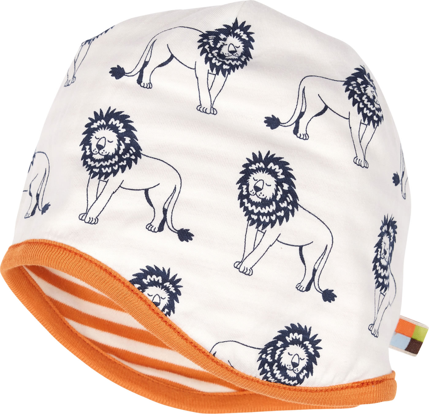 Double-layered reversible hat made of soft cotton jersey by LOUD + PROUD. Depending on your mood, you can wear the striped side or the side with the lions.