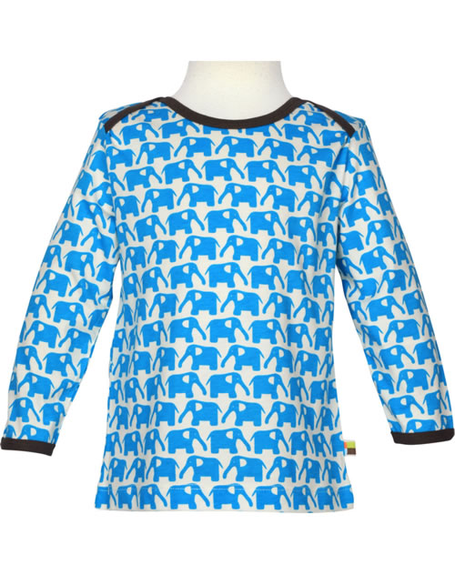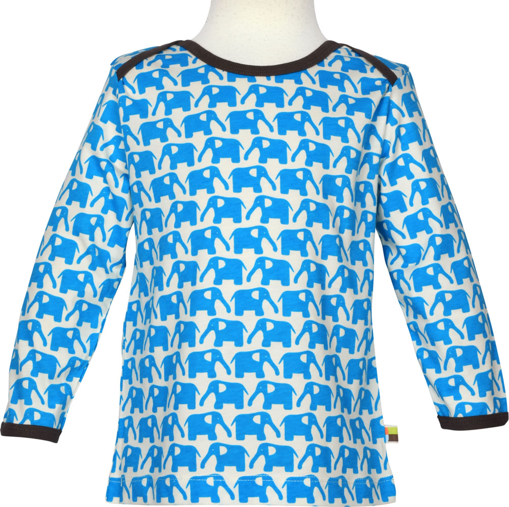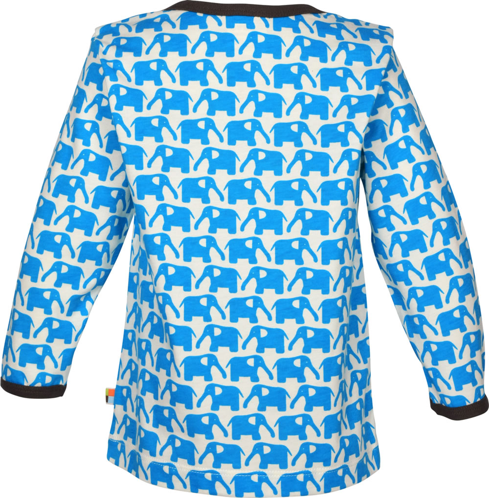 Great Long Sleeve by LOUD + PROUD with elephant-all-over print in soft cotton. The cuffs and collar with contrast piping from close in dark brown. In size 86/92 with wrap collar to facilitate dressing and undressing.