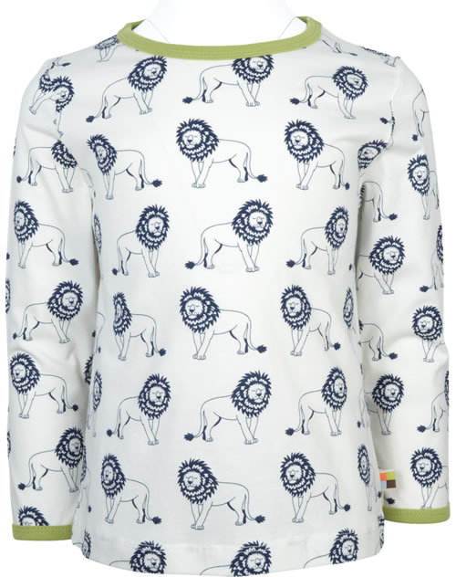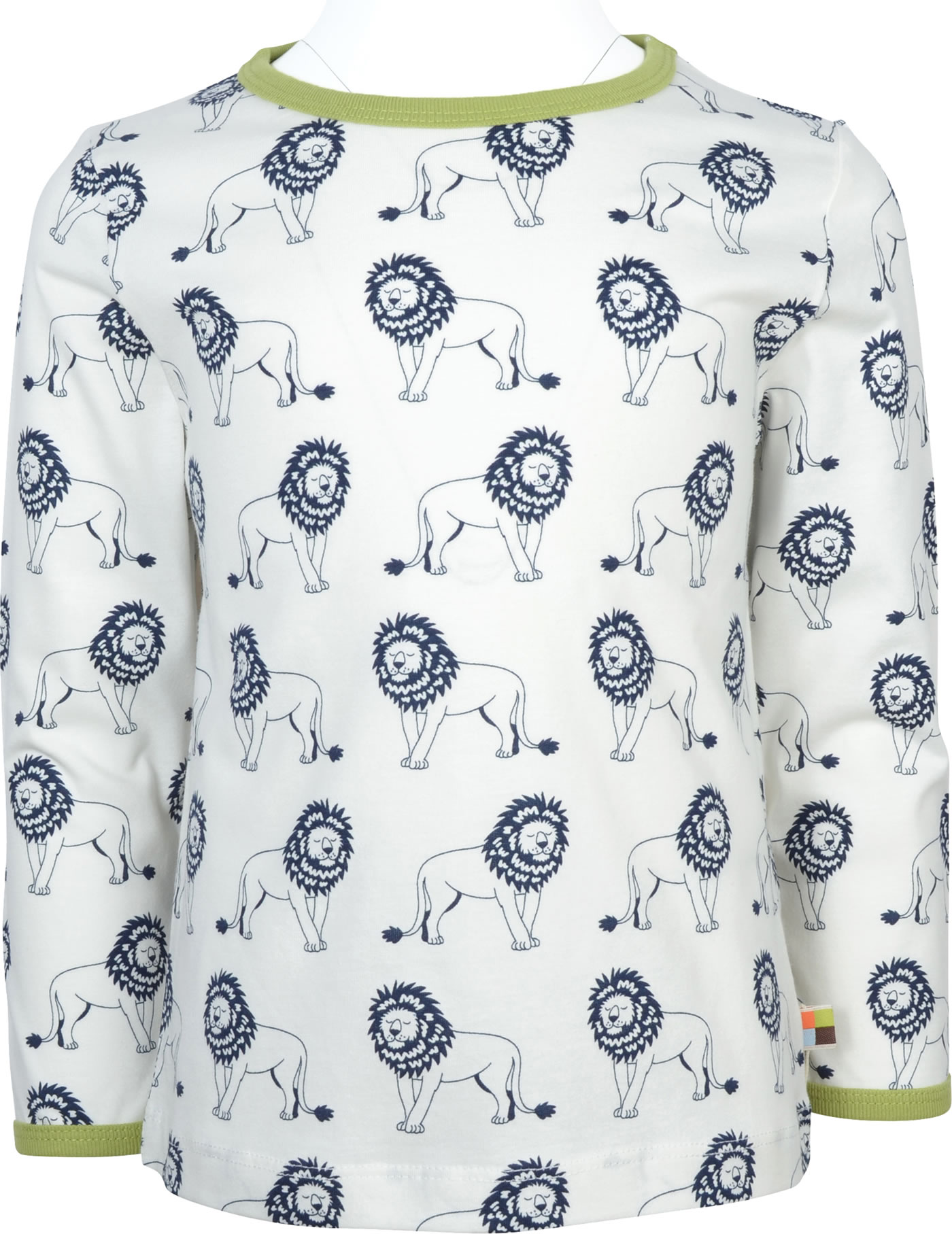 Long-sleeved shirt by LOUD+PROUD made from soft single jersey with great lion motifs. The print is water-based and the cuffs are edged with fine ribs in a contrasting colour. Up to size 86/92 wide opening neckline, from size 98/104 round neckline. With logo flag on the side seam.