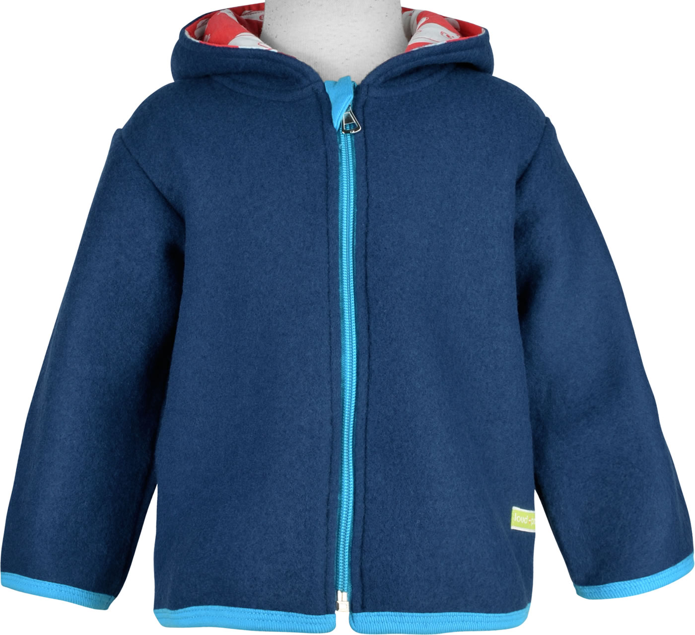 loud+proud Woolfleece jacket with hood POLAR BEARS AND ORCAS ultramarin