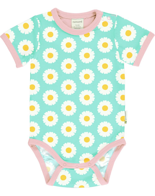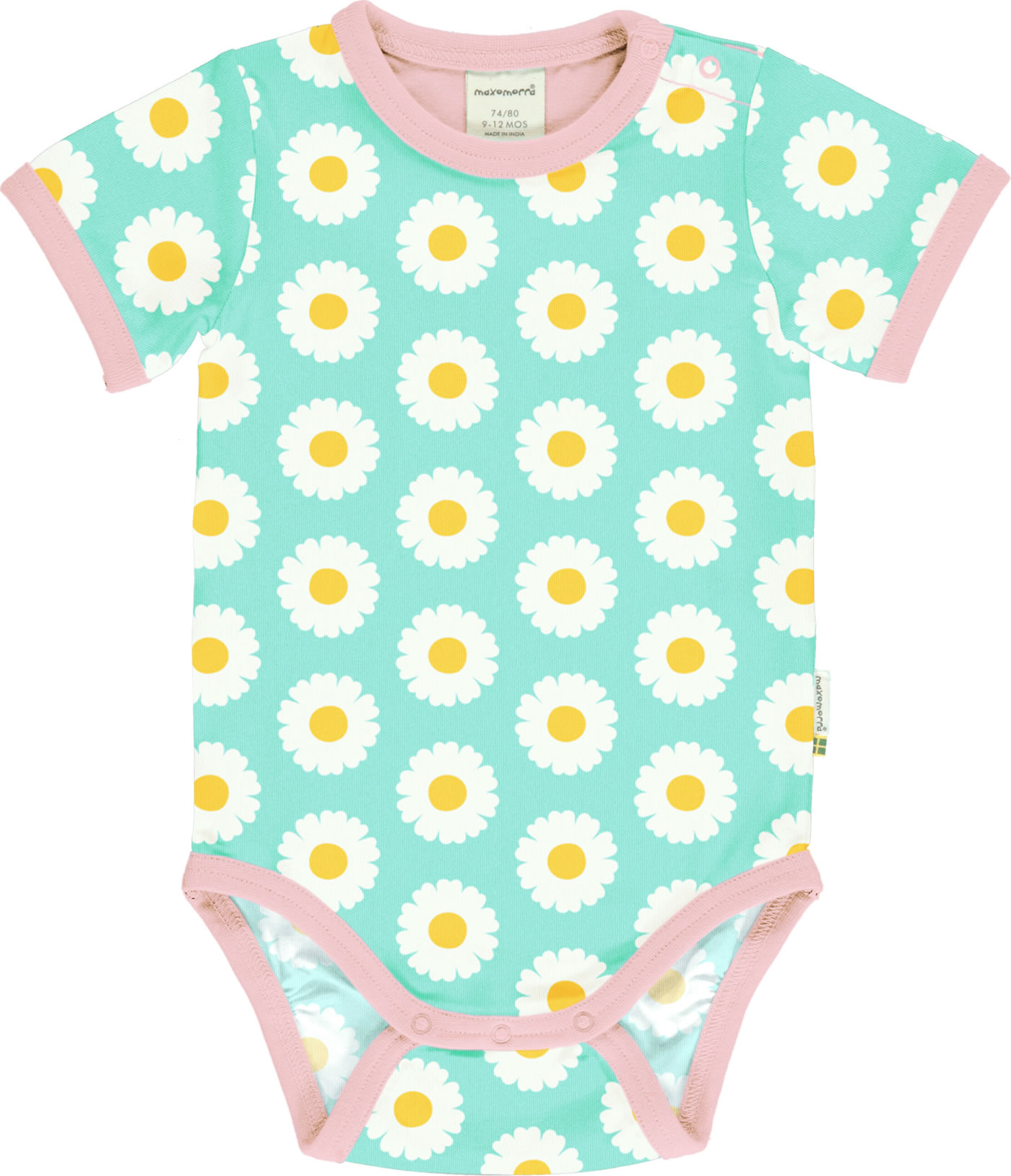 Short-sleeved body with daisy pattern by MAXOMORRA. The buttons on the neckline and in the crotch make it easier to put on and take off. The soft material offers a high wearing comfort.