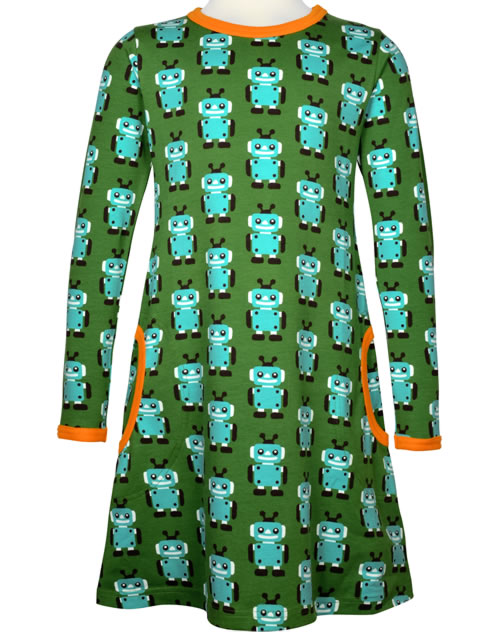 Maxomorra Dress long sleeve ROBOT green