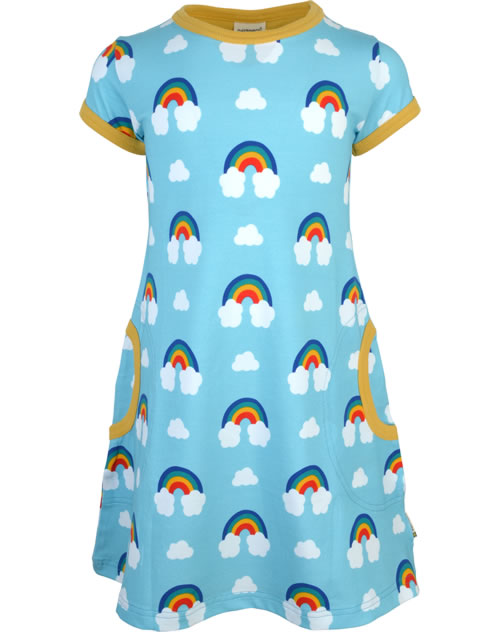 Maxomorra Dress short sleeve RAINBOW blue GOTS