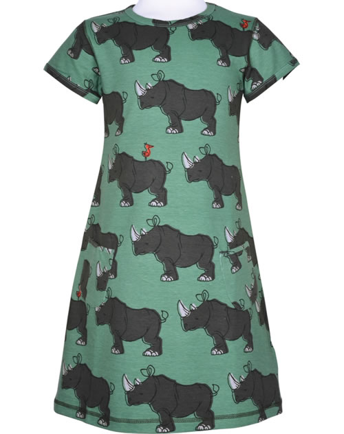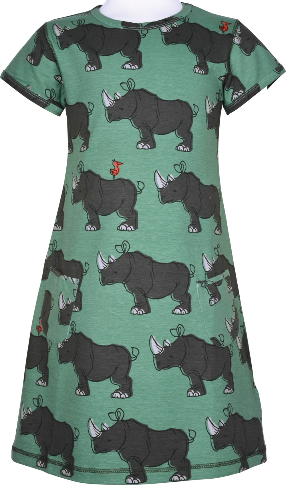 Colourful short sleeve dress with rhino pattern for girls by MAXOMORRA. The bright colors and style make this dress a great eye-catcher. The soft material provides a comfortable fit. Round front pockets offer space for small items.