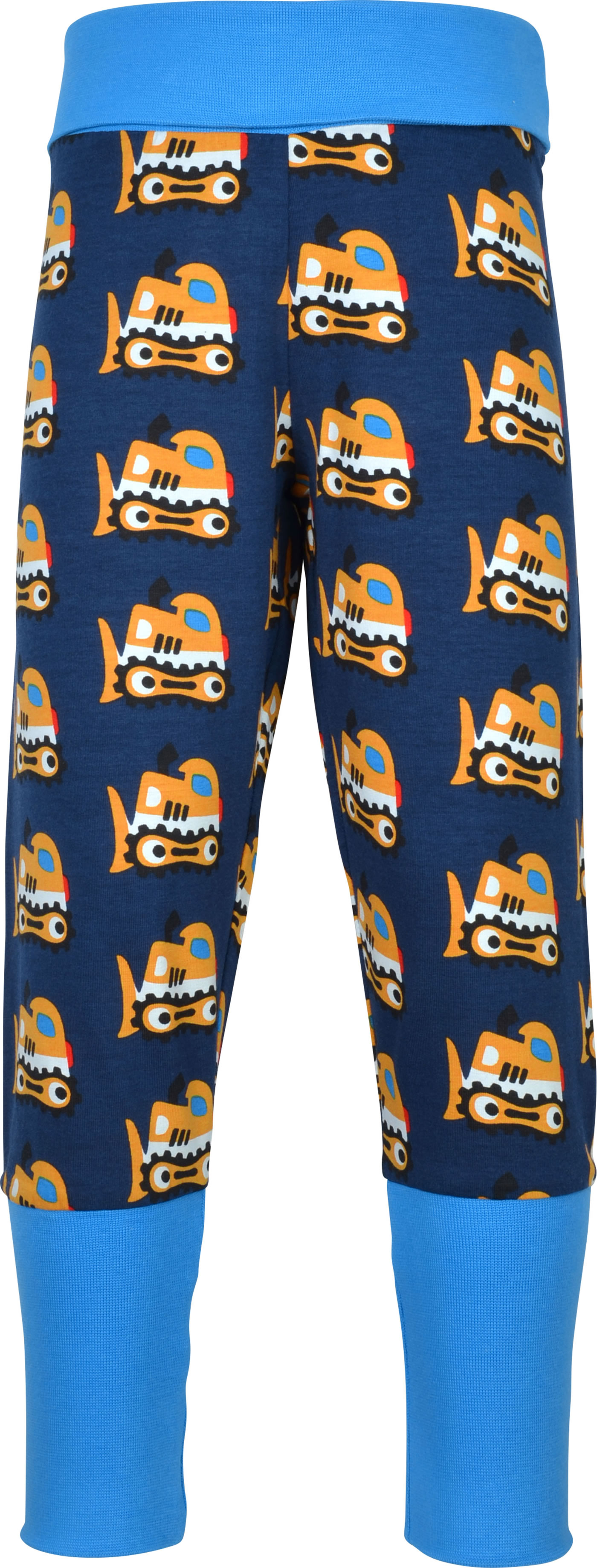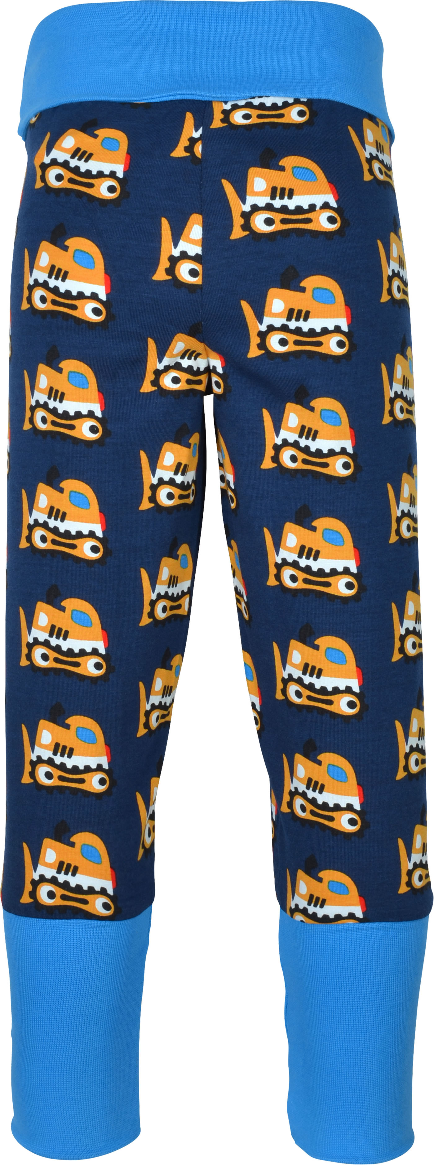 Cozy waist trousers in blue with bulldozer pattern from MAXOMORRA. The popular garment has a wide, soft elastic waistband that makes putting on and taking off child's play. The soft jersey material ensures a high level of comfort.