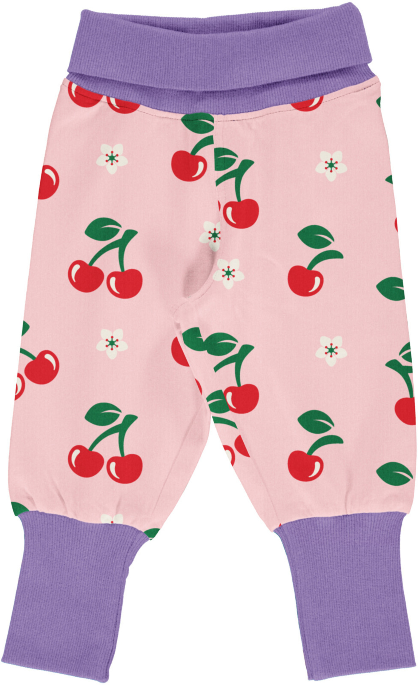 Comfortable pink trousers with cherry motifs from Maxomorra. This popular garment features a wide, soft elastic waistband that makes them easy to put on and take off.