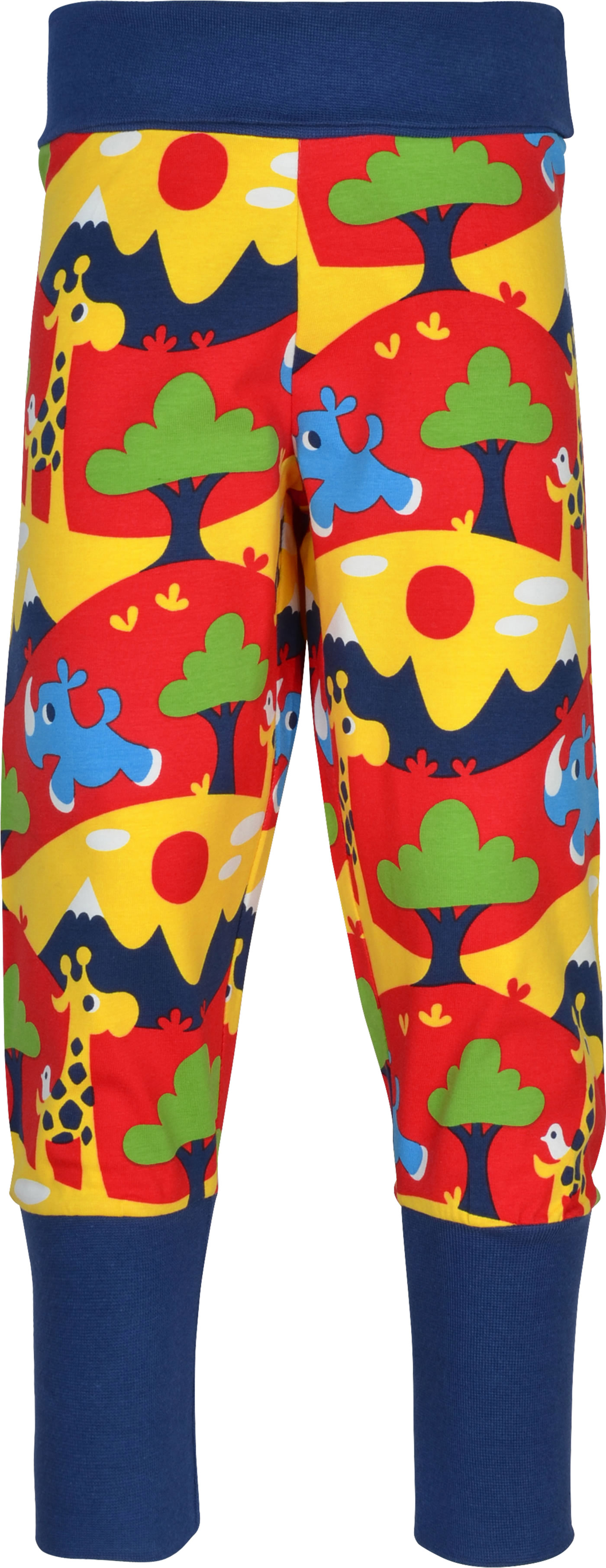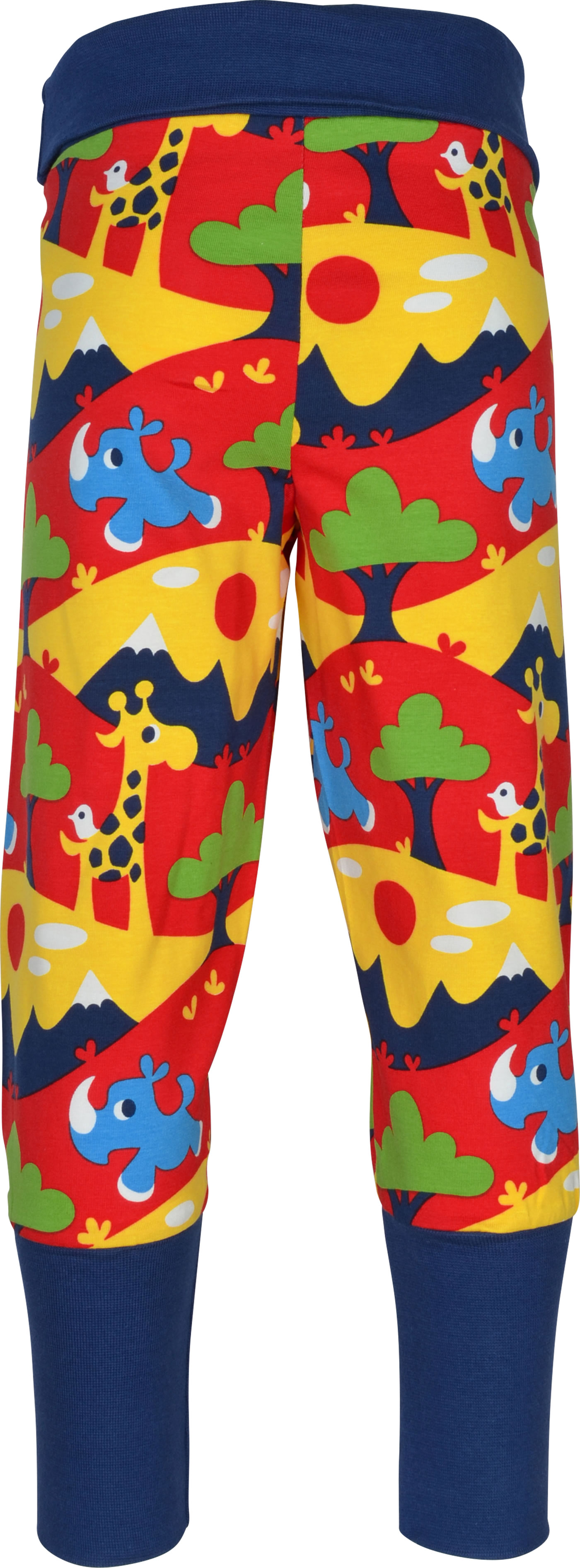 Cozy waist trousers with colorful animal pattern from MAXOMORRA. The popular garment has a wide, soft elastic waistband that makes putting on and taking off child's play. The soft jersey material ensures a high level of comfort.