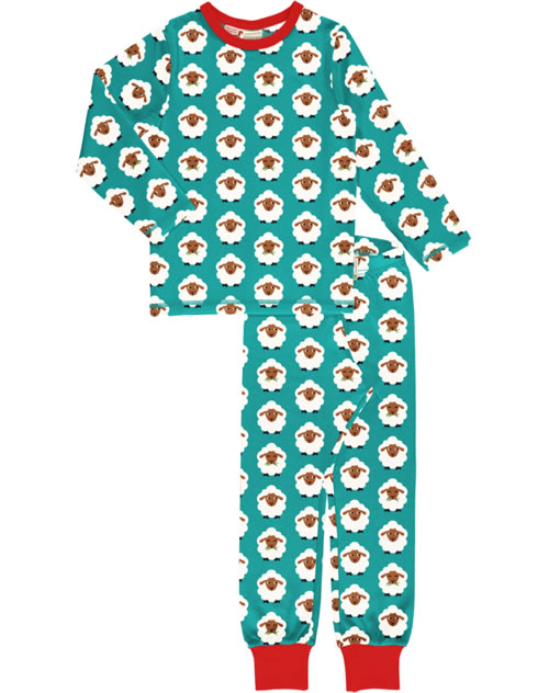 Maxomorra Pyjama set long FARM SHEEP blue