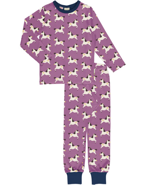 Maxomorra Pyjama set long RHORSE lila GOTS