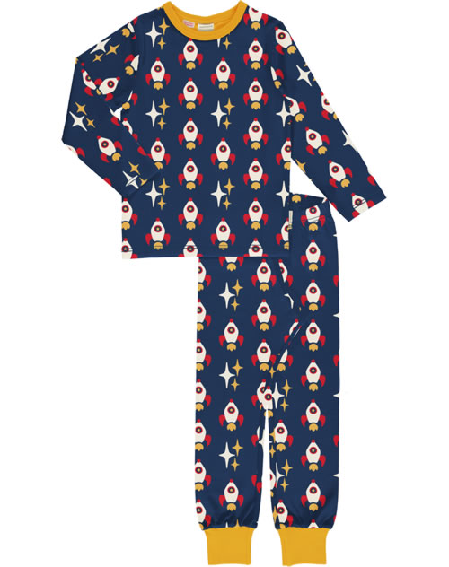 Maxomorra Pyjama set long ROCKET navy GOTS