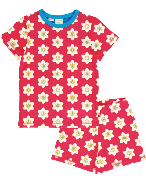 Maxomorra Pyjama set short PARTY ANEMONE pink/blue GOTS