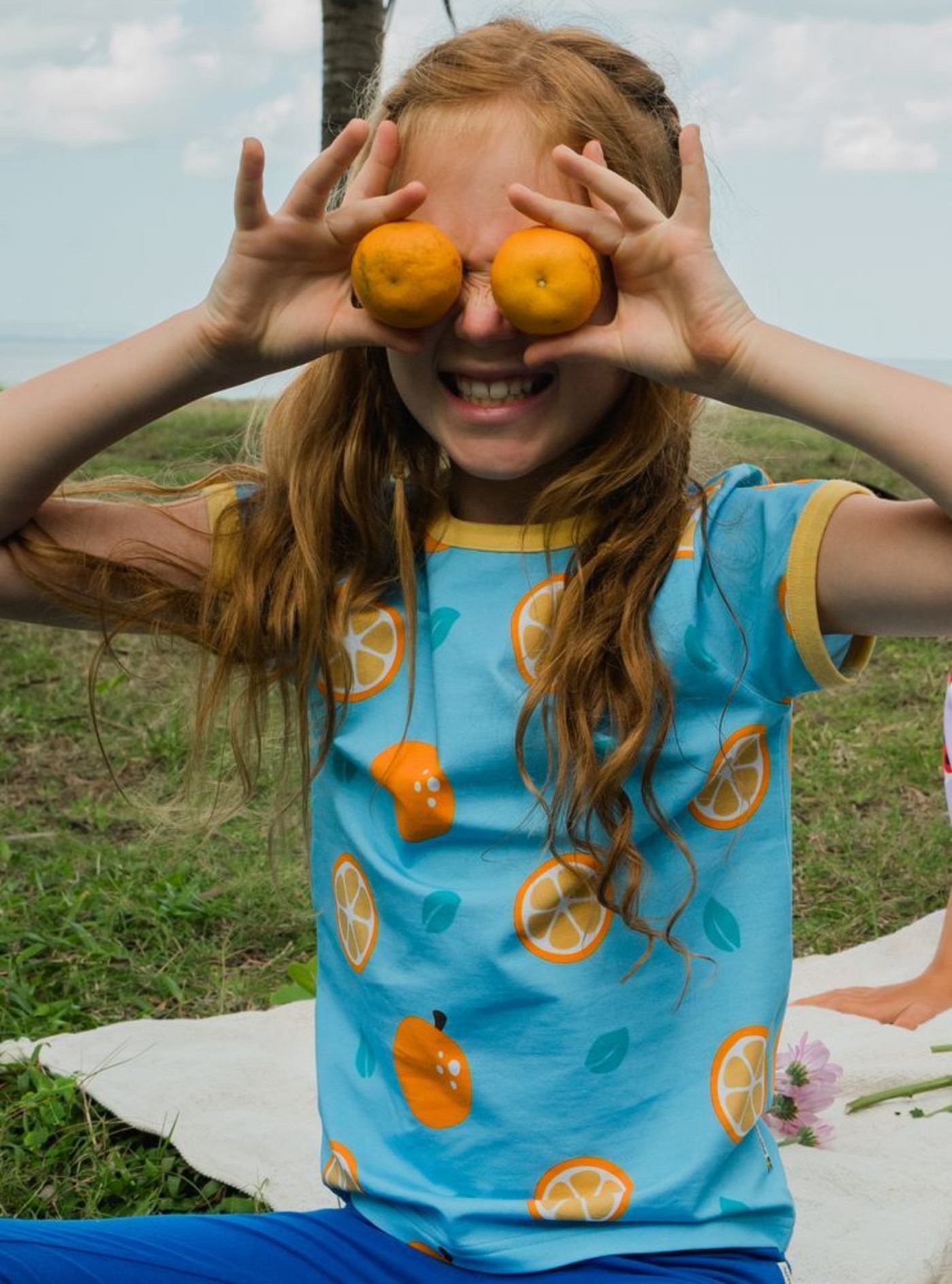 Maxomorra T-Shirt short sleeve GOTS made of cotton - Orange Blau