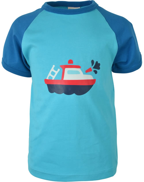 Maxomorra T-Shirt short sleeve Print FIREBOAT blue GOTS
