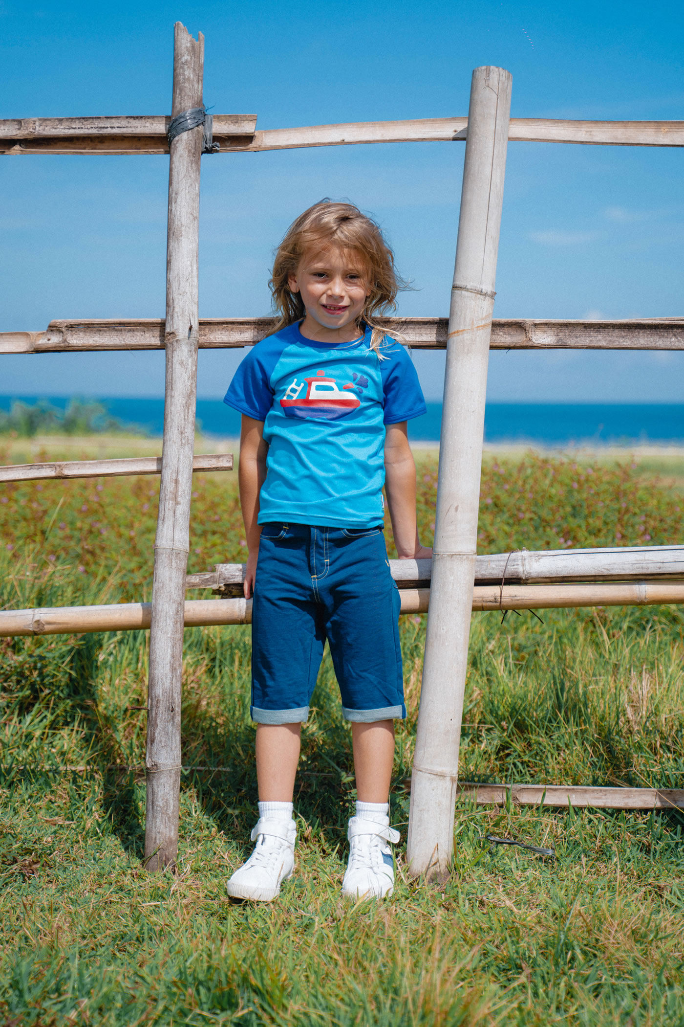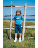 Short sleeve shirt in blue with great boat print on the chest for boys by MAXOMORRA. The soft material make for a comfortable fit.