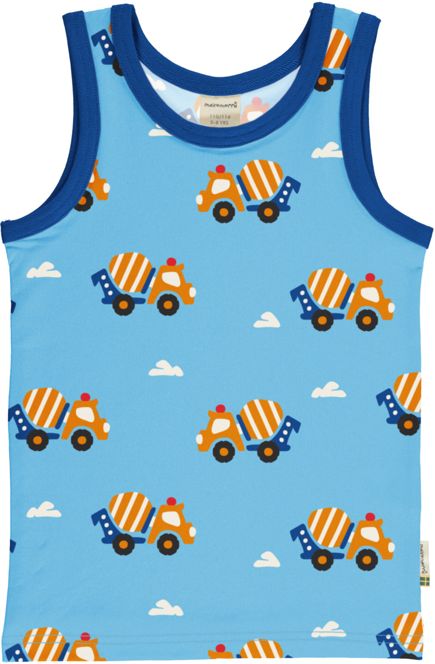 Maxomorra Tanktop Undershirt GOTS made of cotton - Cement Truck Blau