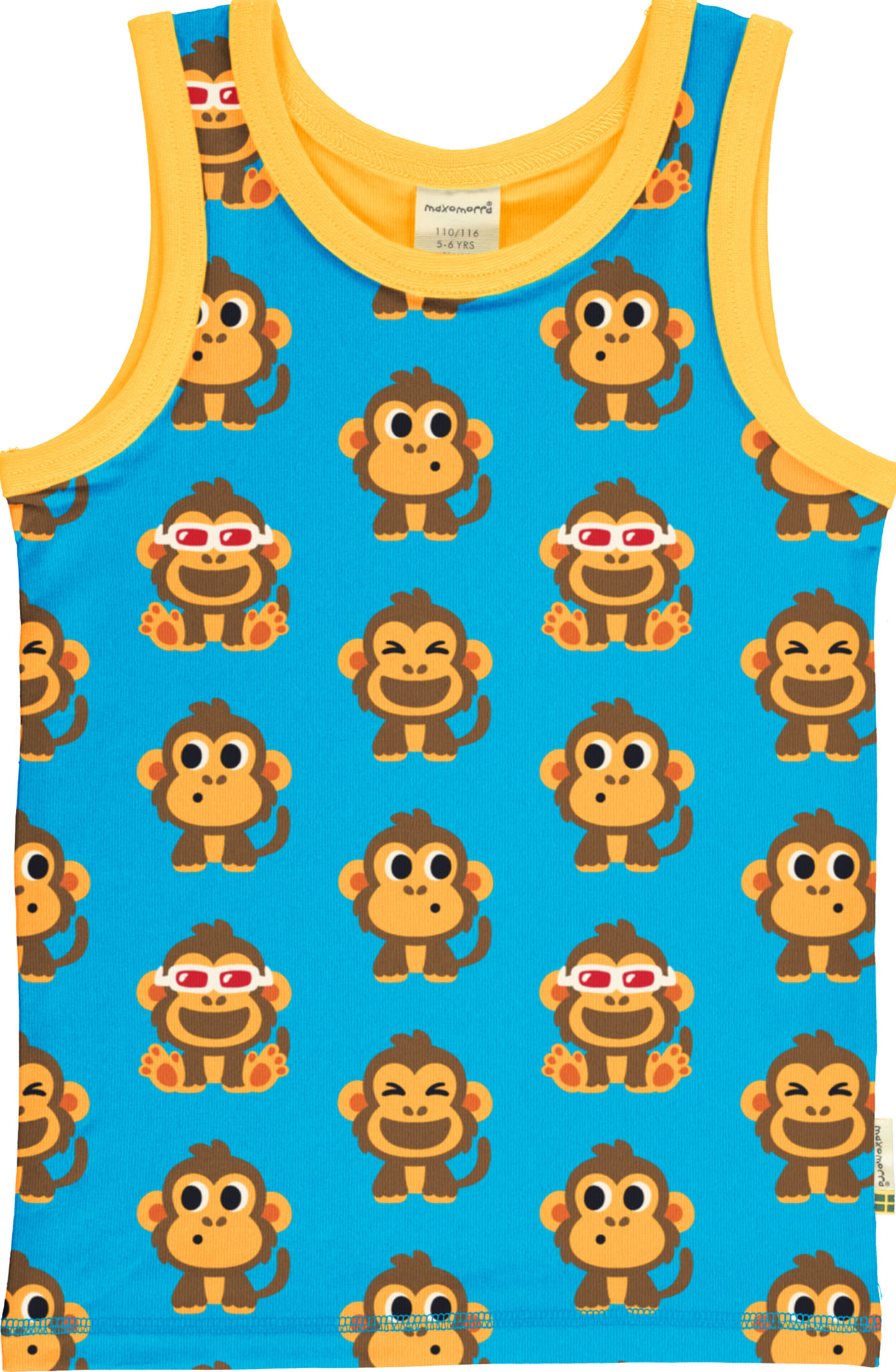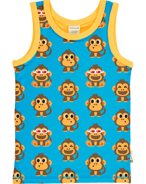Maxomorra Tanktop Undershirt PARTY MONKEY blue/yellow GOTS