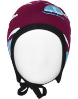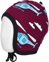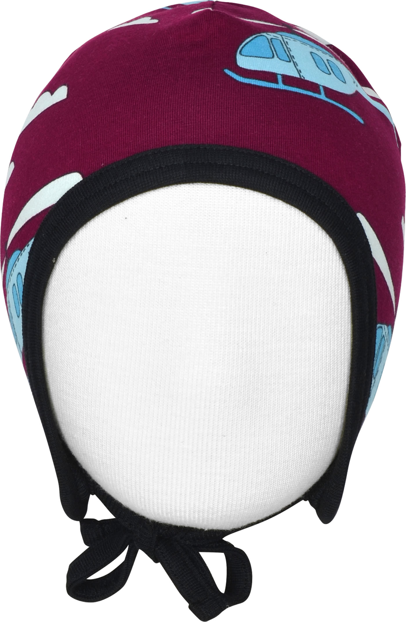 Double layered hat to tie up by MEYADEY. The helicopter sky motif and the contrasting hem make it a great eye-catcher. The soft and elastic material ensures high wearing comfort.