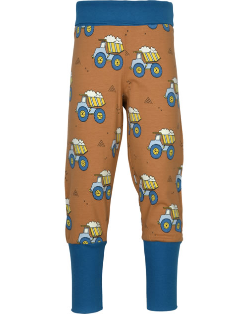Cozy waist trousers in blue with colourful dumping wheel pattern by MEYADEY. The popular garment has a wide, soft elastic waistband that makes putting on and taking off child's play. The soft jersey material ensures a high level of comfort.