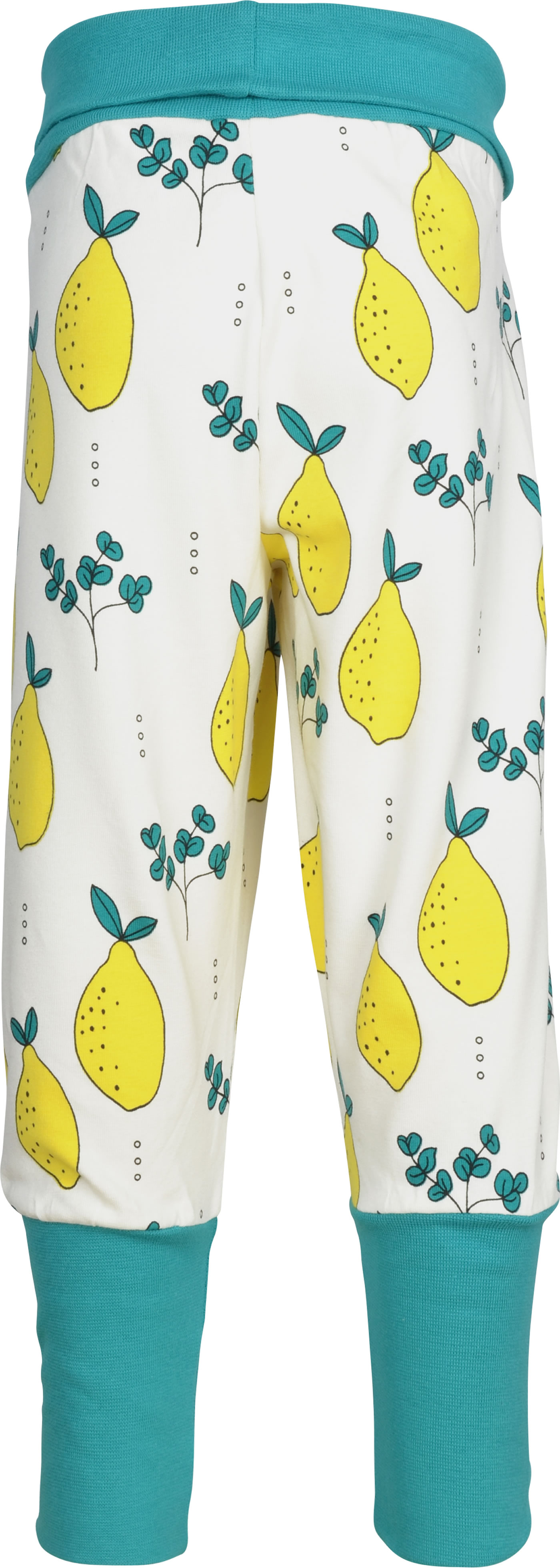 Cozy waist trousers in yellow with lemon motif from MEYADEY. The popular garment has a wide, soft elastic waistband that makes putting on and taking off child's play. The soft jersey material ensures a high level of comfort.