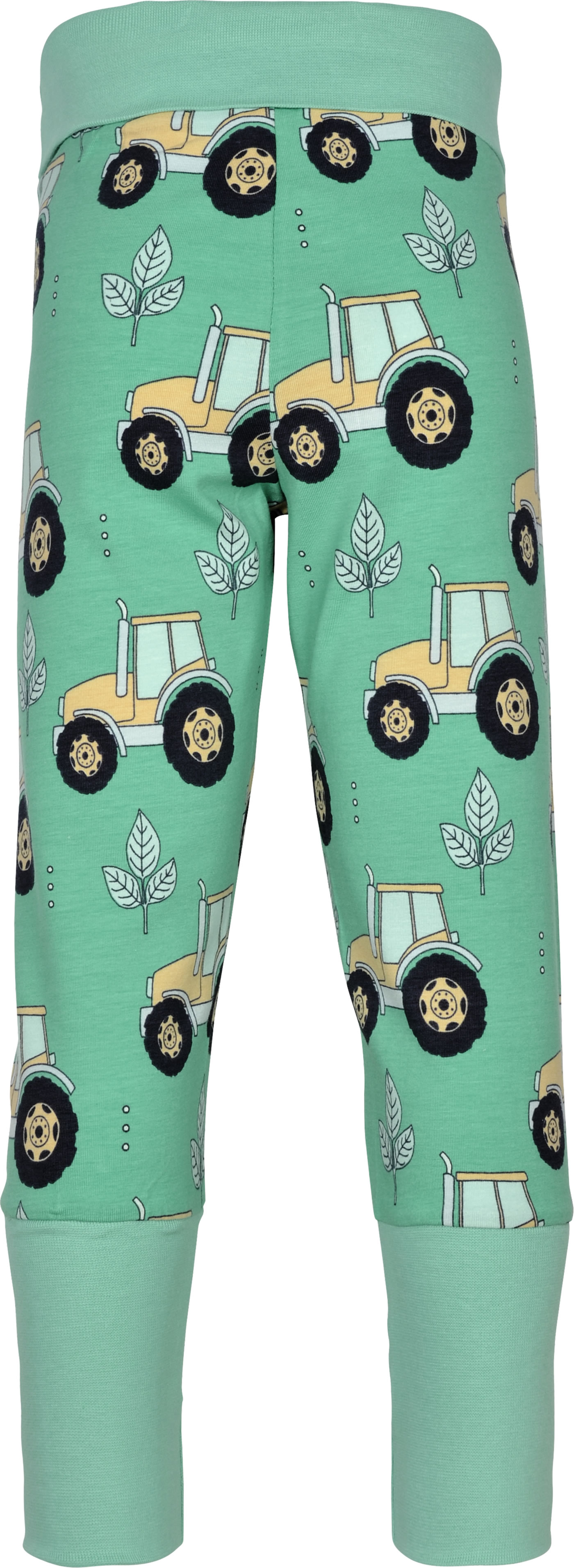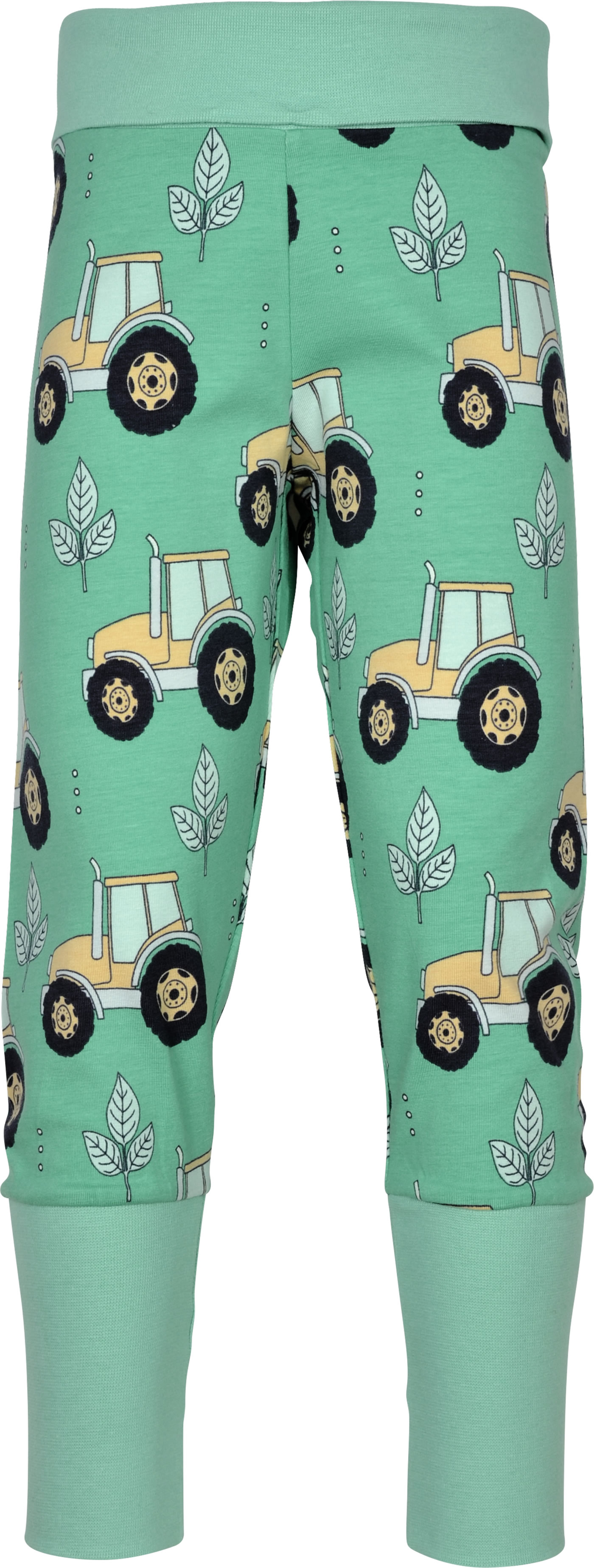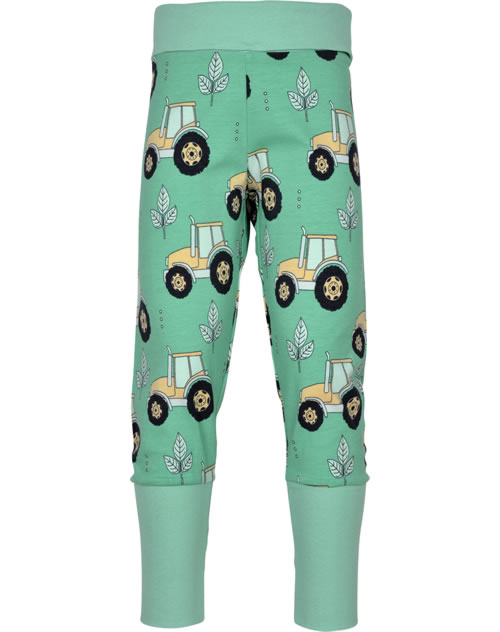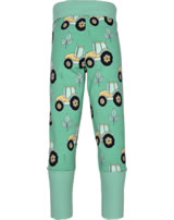 Cozy waist trousers in green with colourful tractor pattern by MEYADEY. The popular garment has a wide, soft elastic waistband that makes putting on and taking off child's play. The soft jersey material ensures a high level of comfort.