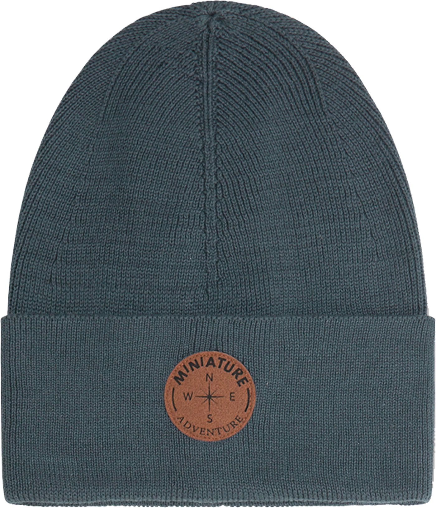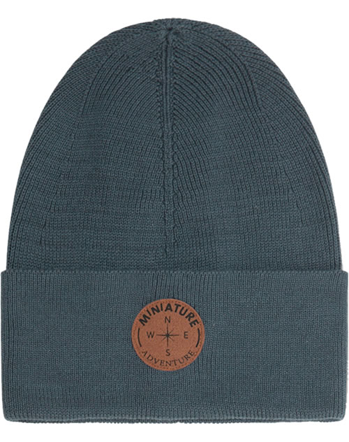 Cool beanie with a ribbed look made from organic cotton by MINI A TURE for children. The hem of the knitted hat is rolled up and there is a MINI A TURE logo patch on the front.