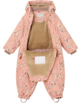 The snow suit with floral pattern WISTI by MINI A TURE is wind and waterproof. Soft cuffs in the sleeve ends with a thumb hole ensure that everything stays where it belongs. Two long zippers make it easy to put on and take off. The overall has a soft fleece material in the torso area and in the detachable hood. So it keeps the offspring nice and warm in winter. Rubber straps in the leg ends of the ski suit prevent the trouser legs from riding up and are also non-slip under the footwear. Reflective details ensure good visibility in the dark season. Small pockets with snaps and zips provide space for small items.