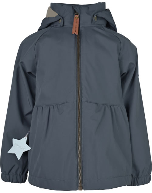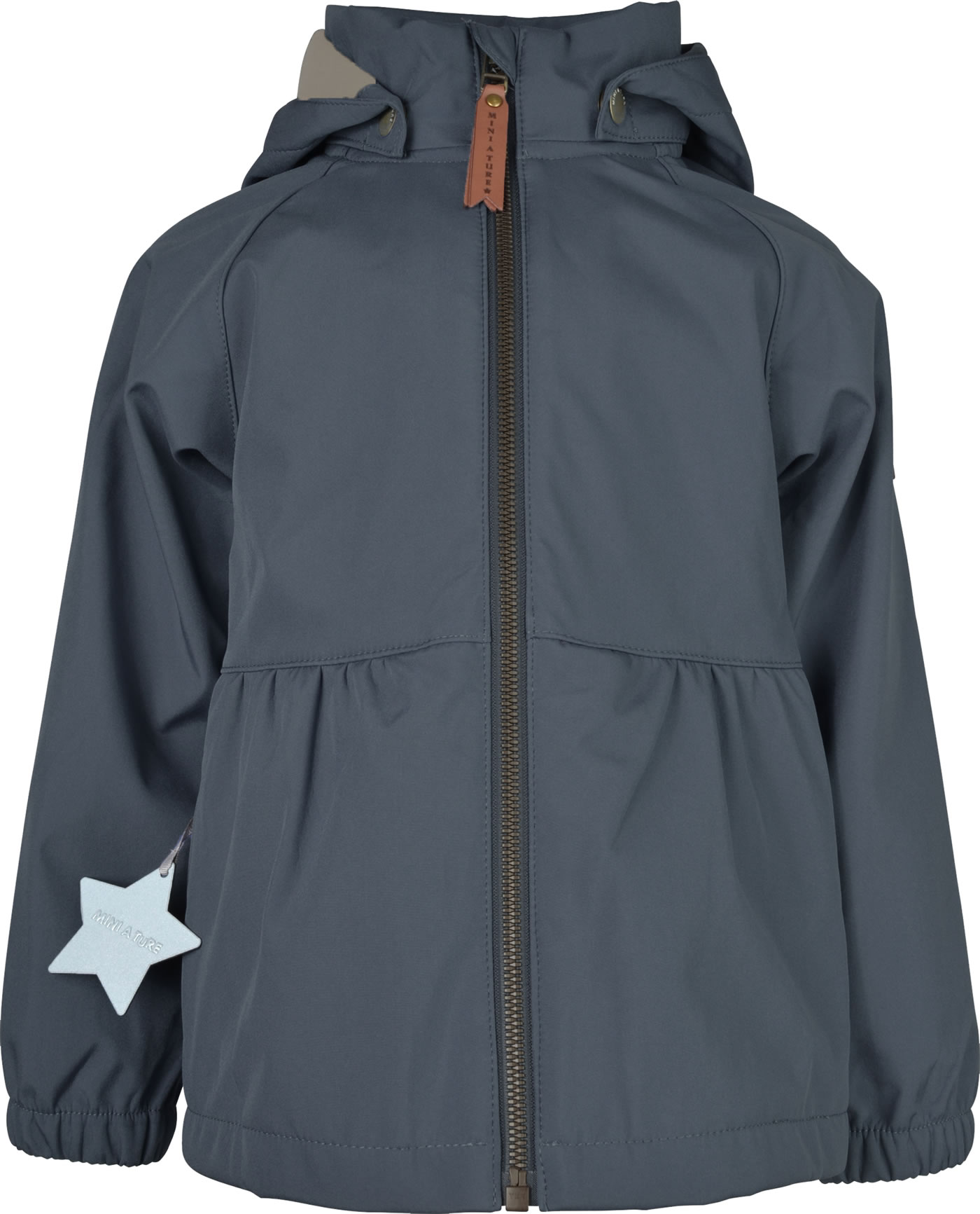 This girly softshell jacket with a soft fleece lining BRIDDI by MINI A TURE is a great companion for the transitional period. Thanks to its feather-light weight, the softshell jacket is comfortable to wear. On the outside, waterproof and windproof material protects against moisture and wind. The jacket is softly lined and the hood is detachable. Reflective details on the jacket ensure good visibility when you're out in the dark. Small things can be stored in the pockets. The waisted cut make BRIDDI an enchanting eye-catcher