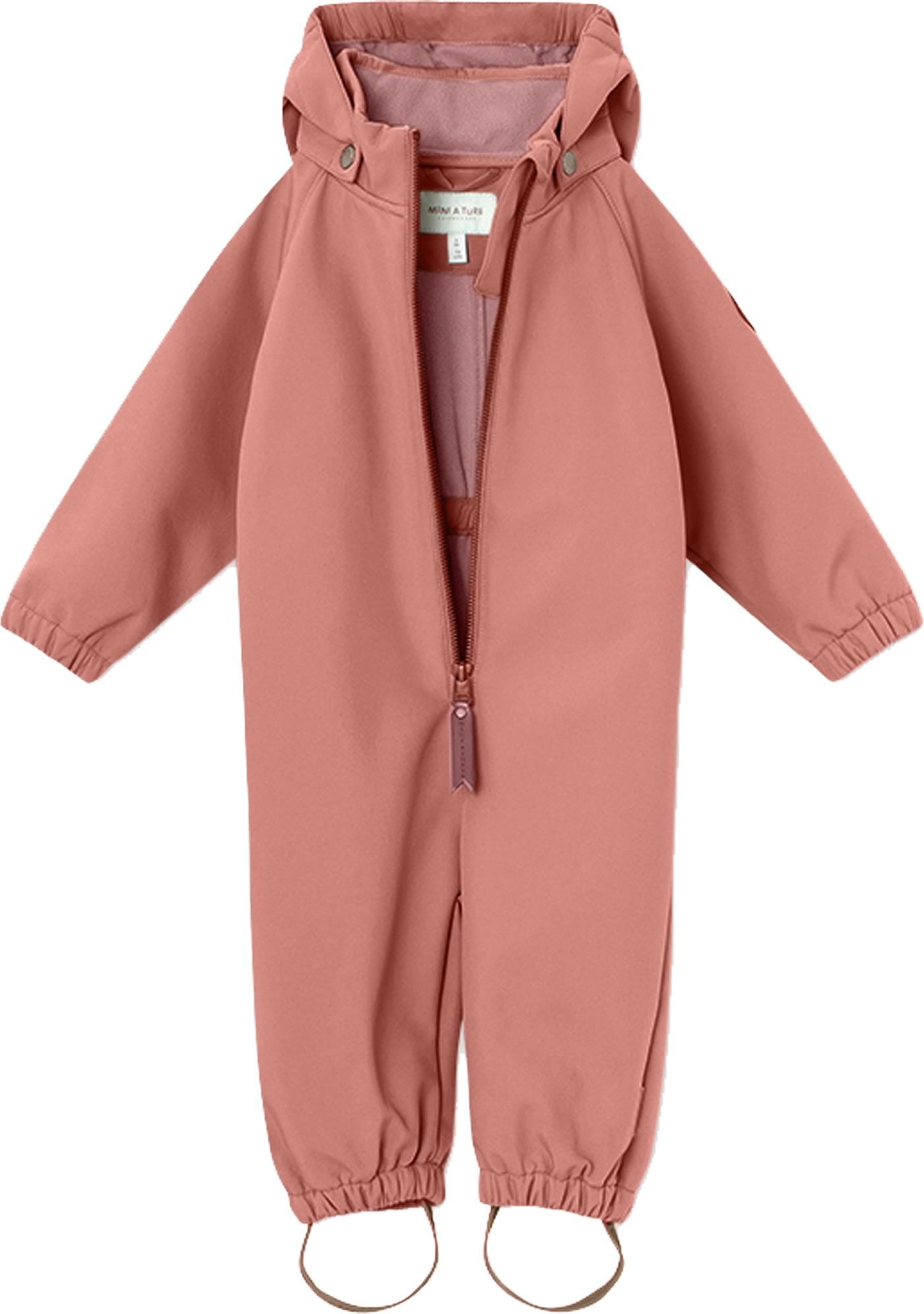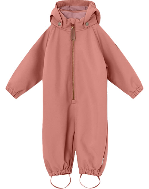 The ARNO softshell suit for children by MINI A TURE is windproof and waterproof. Rubber cuffs on the sleeve ends ensure that everything stays where it belongs. A long zip at the front makes for easy on and off. The overall has a soft fleece material inside. So it keeps the offspring nice and warm on cool days. Rubber straps in the leg ends of the soft shell suit prevent the trouser legs from riding up and are also non-slip under shoes. Reflective details ensure good visibility in the dark season.