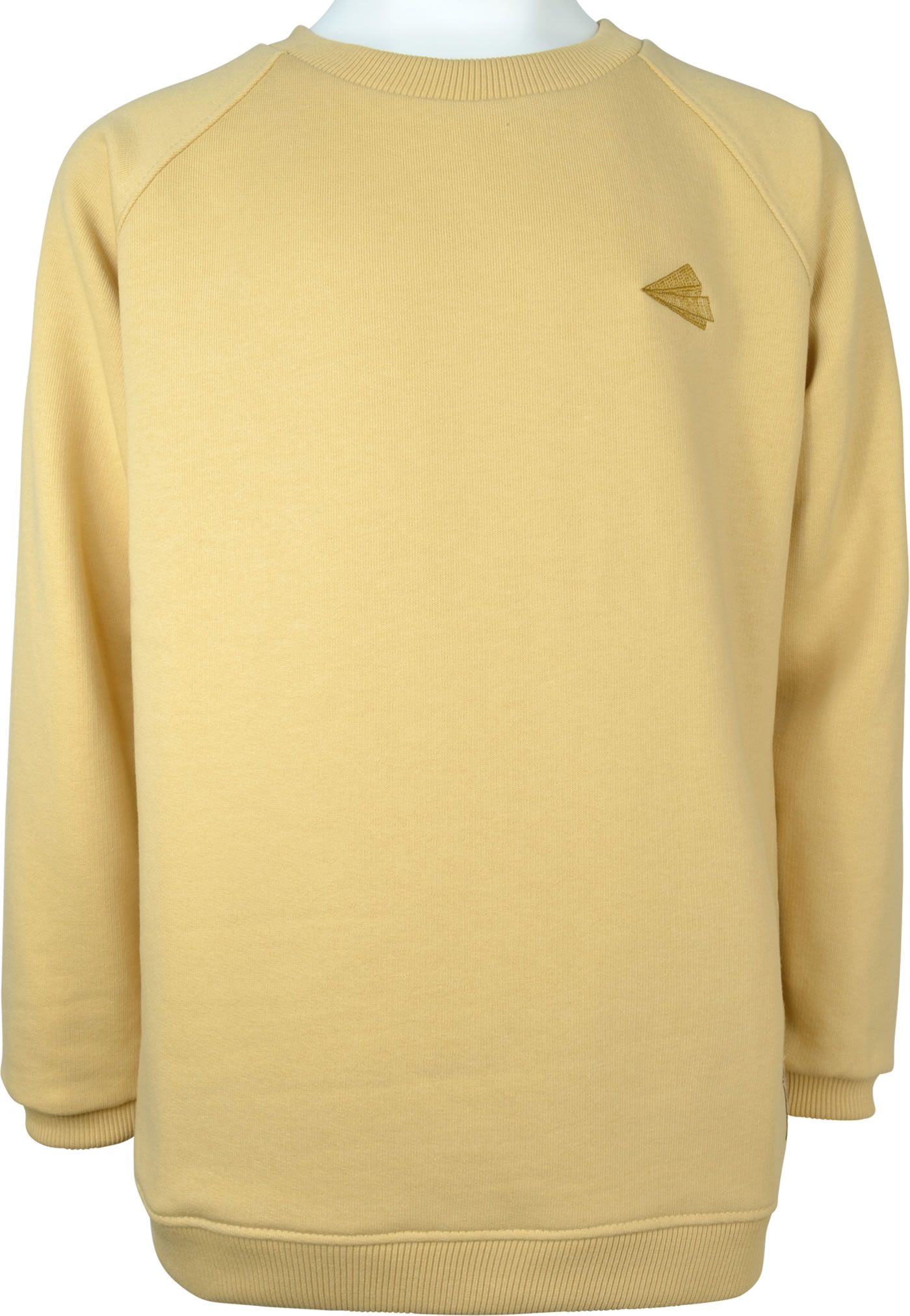 The comfortable MINI A TURE sweatshirt for girls and boys comes in great colors that are fun. Slightly roughened on the inside and with a paper airplane embroidery on the chest, the pullover made of organic cotton and recycled polyester is a popular piece of clothing in spring and summer. Ribbed cuffs at the neckline, sleeves and waist stand out visually and ensure a good fit. A small logo patch is located on the front in the waist area.