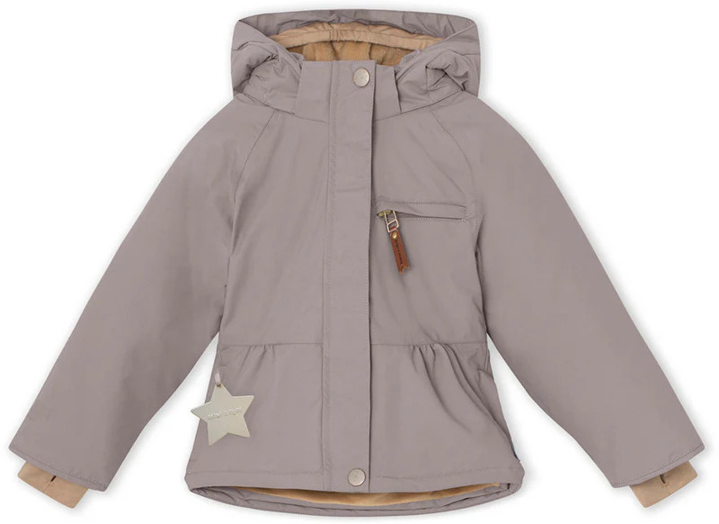 This girly winter jacket with a soft fleece lining BRIDDINE by MINI A TURE is a great companion for the cold season. On the outside, waterproof and windproof material protects against moisture and wind. The jacket is softly lined and the hood is detachable. Reflective details on the jacket ensure good visibility when you're out and about in the dark. Three pockets that can be closed with a zipper offer space for small items. The waisted cut with the ruffles make BRIDDINE an enchanting eye-catcher