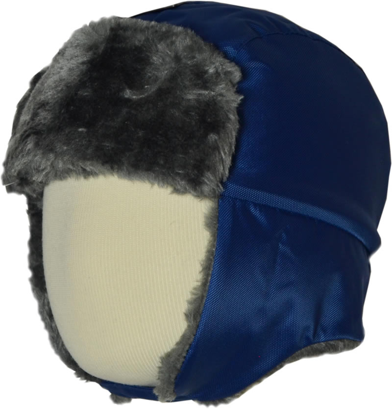 Hat with fake fur trim and adjustable chin strap.