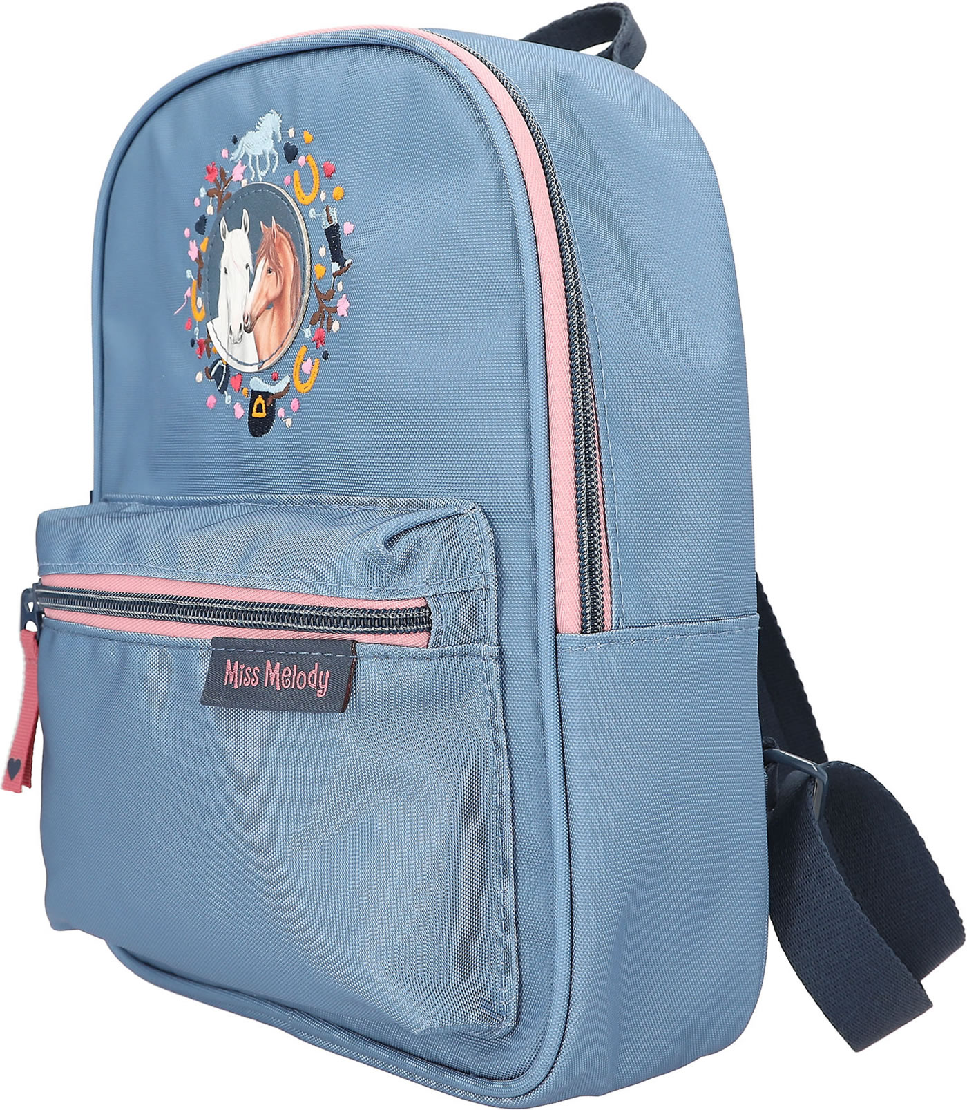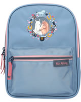 Bright sky blue and colorful embroidery: Miss Melody's daypack with a cute sewn-on horse patch is visually simple and is therefore an absolute eye-catcher. With top handle, length-adjustable dark blue shoulder straps, a patch front pocket and a separate extra compartment inside.