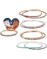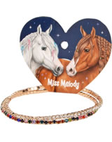 Pearls are trendy! Miss Melody's pretty bracelets with colorful textile yarns, gold-plated charms and cool statements are available in three different designs: heart and "Love", horseshoe and "Lucky" as well as star and "Magic".