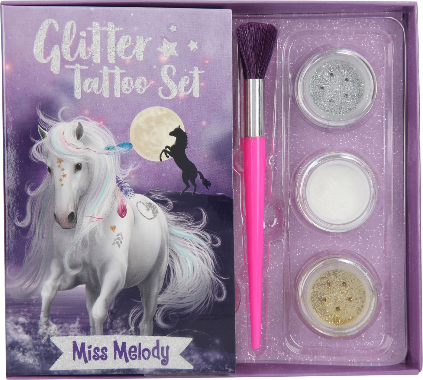 Design your own glitter tattoos! Chose from 54 designs and three glitter powders - snd create sparkling eye catchers on your skin.